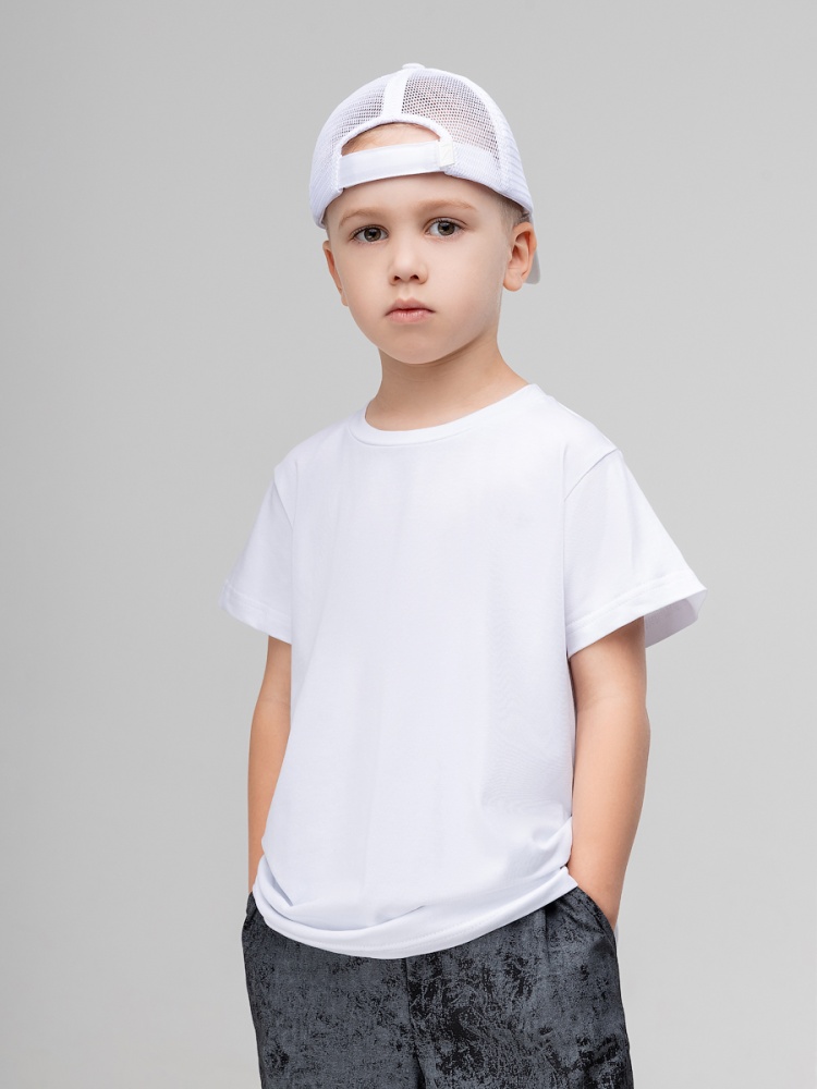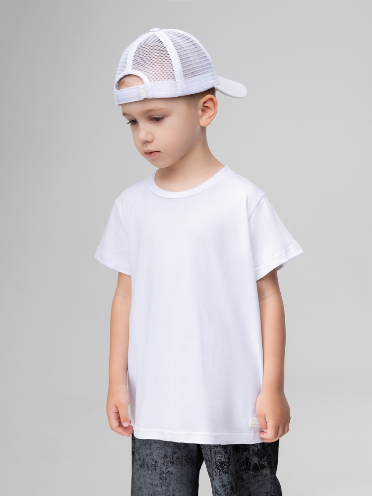 Материал кулирная гладь Состав 92% хлопок 8% лайкра Детская футболка. Детали: короткие рукава, полуприлегающий покрой, округлый вырез горловины. Состав: кулирная гладь 92% хлопок 8% лайкра