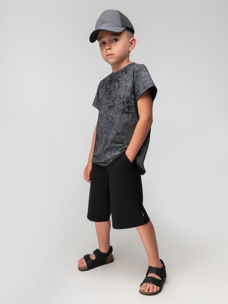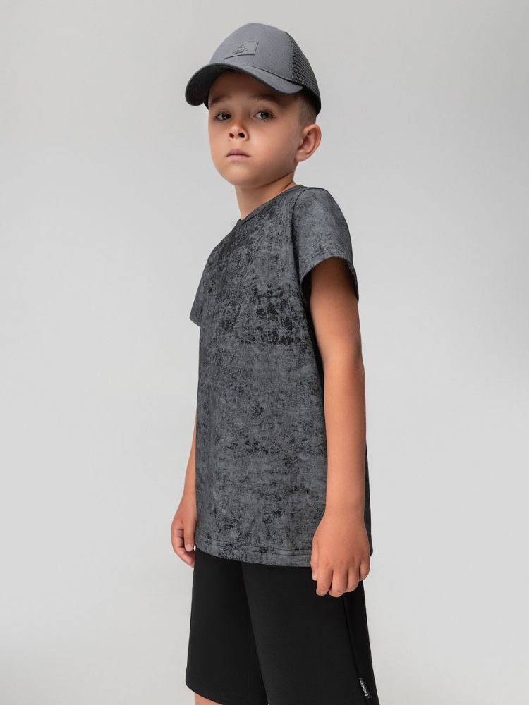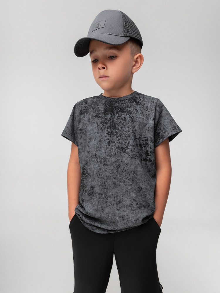 Материал кулирная гладь Состав 92% хлопок 8% лайкра Футболка для детей дошкольного возраста. Футболка свободного силуэта с втачным коротким рукавом. Горловина футболки округлой формы. Состав: кулирная гладь 92% хлопок 8% лайкра.