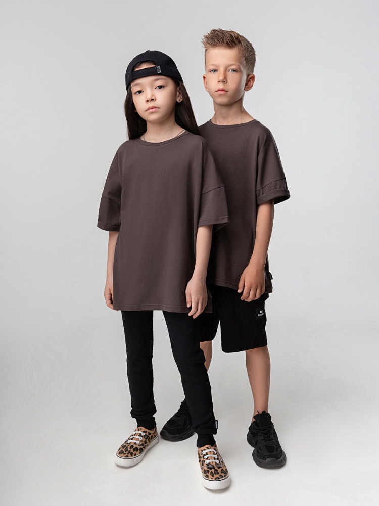 Материал кулирная гладь Состав 92% хлопок 8% лайкра Футболка оверсайз детская. Настоятельно рекомендуем брать свой размер, так как в крой уже заложен оверсайз. Детали: короткий спущенный рукав, свободный покрой, округлый вырез горловины. Состав: кулирная гладь 92% хлопок 8% лайкра
