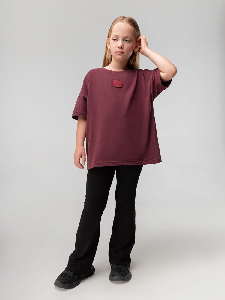 Материал кулирная гладь Состав 92% хлопок 8% лайкра Свободная футболка с эффектом фрчи. Короткий рукав, спущенное плечо.