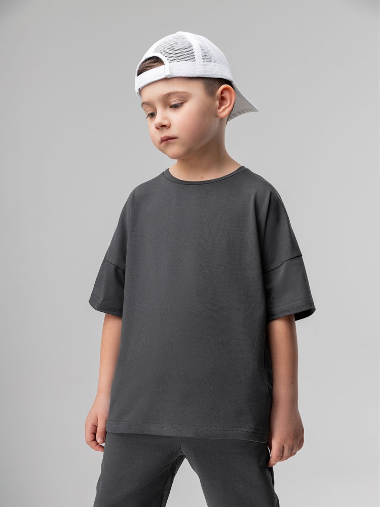 Материал кулирная гладь Состав 92% хлопок 8% лайкра Детская футболка. Детали: короткие рукава, полуприлегающий покрой, округлый вырез горловины.