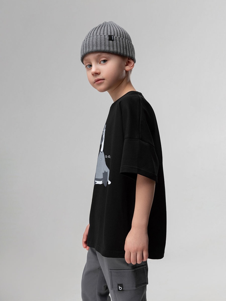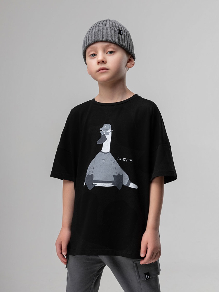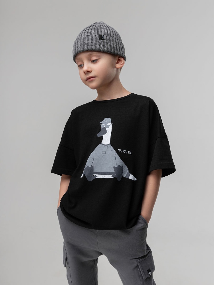Материал кулирная гладь Состав 92% хлопок 8% лайкра Футболка для детей дошкольного возраста. Футболка свободного силуэта с втачным коротким рукавом. Горловина футболки округлой формы. Низ изделия прямой. На передней полочке нанесена печать.