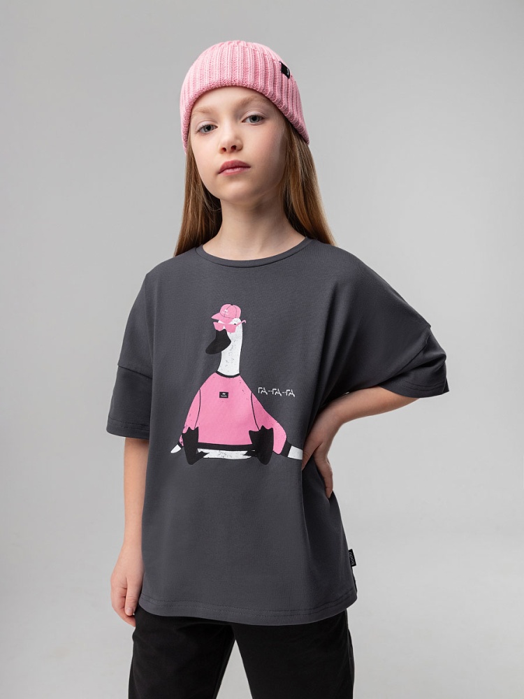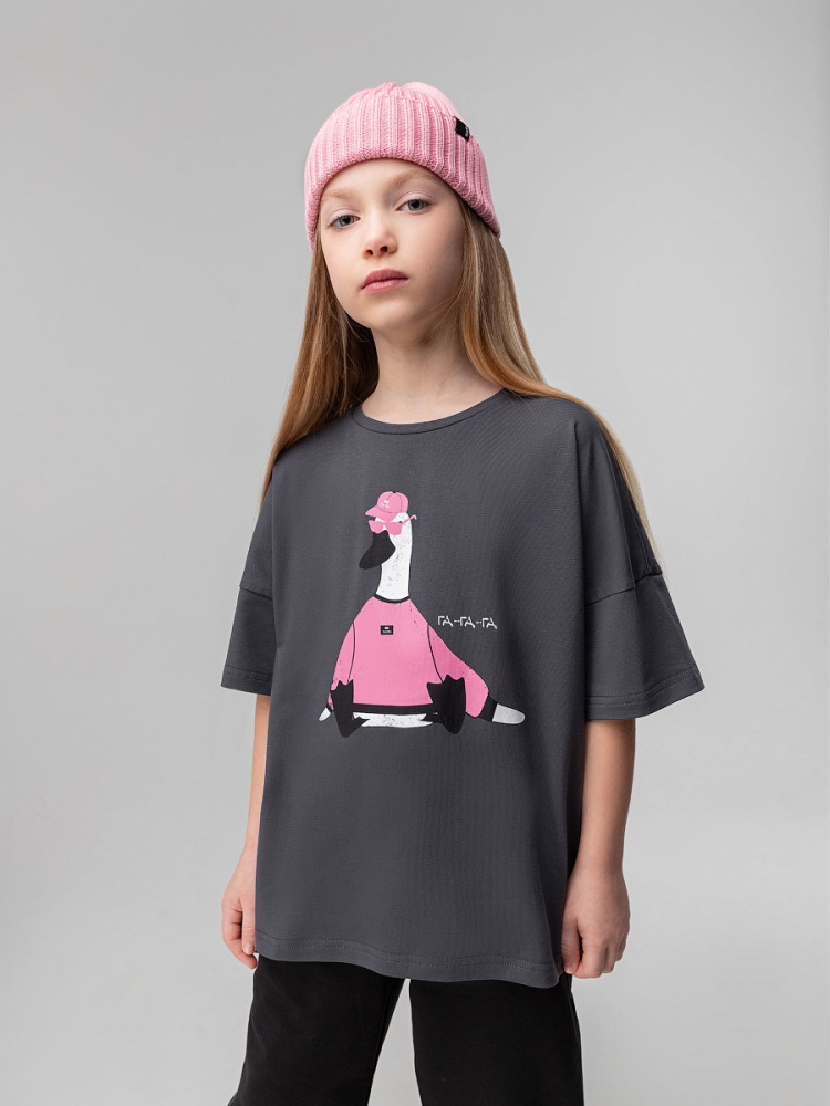 Материал кулирная гладь Состав 92% хлопок 8% лайкра Футболка для детей дошкольного возраста. Футболка свободного силуэта с втачным коротким рукавом. Горловина футболки округлой формы. Низ изделия прямой. На передней полочке нанесена печать.