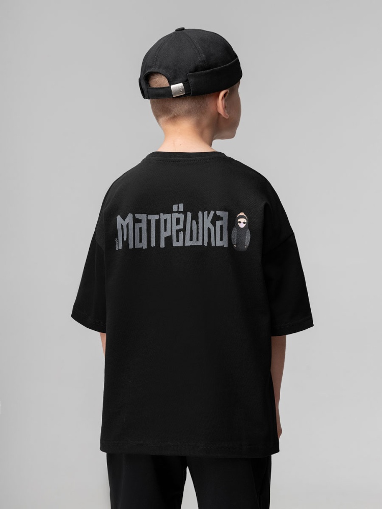 Материал кулирная гладь Состав 100% хлопок Свобная футболка с коротким рукавом. На полочке принт "Матрешка".