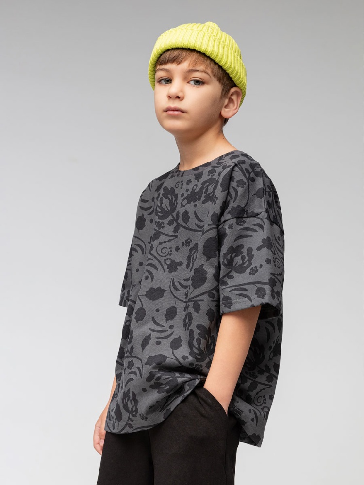 Материал кулирная гладь Состав 100% хлопок Свободная футболка со спущенным плечом, короткий рукав. Набивка хохлома.