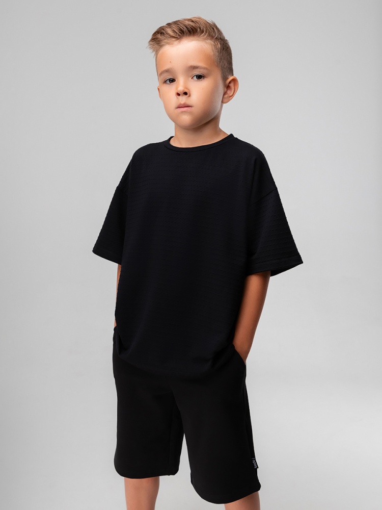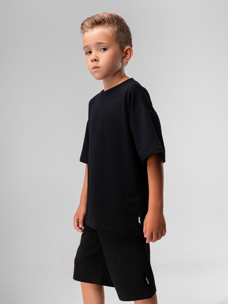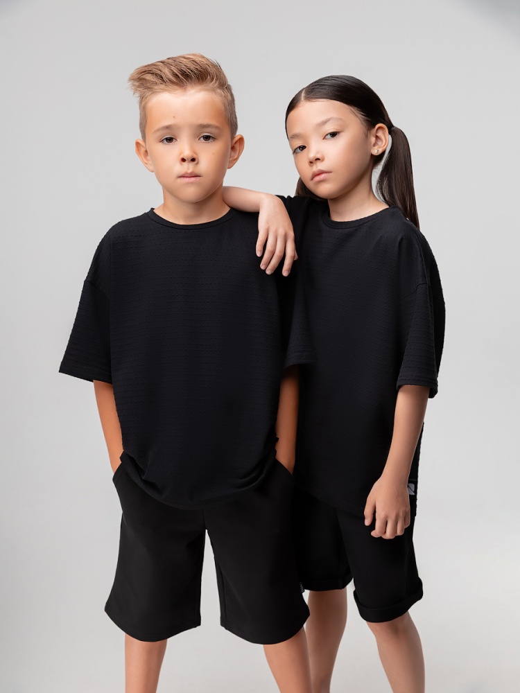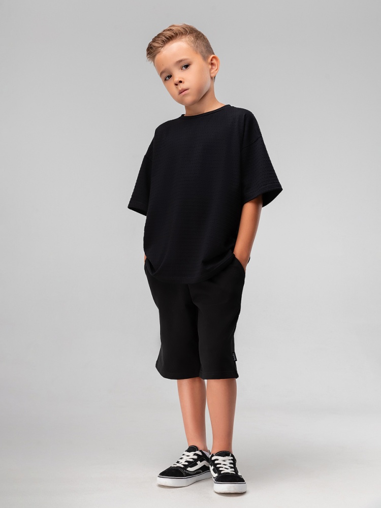 Материал кулирная гладь Состав 92% хлопок 8% лайкра Свободная футболка из кулирной глади с тиснением, короткий рукав.