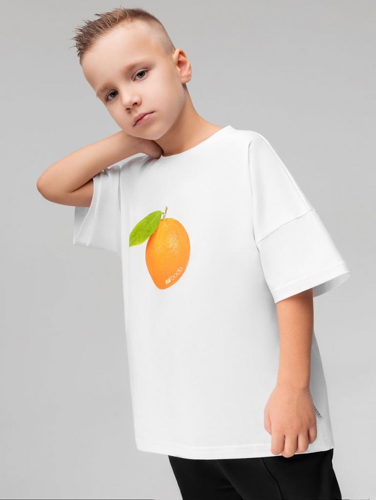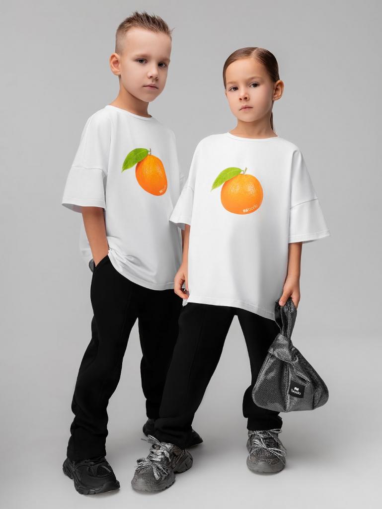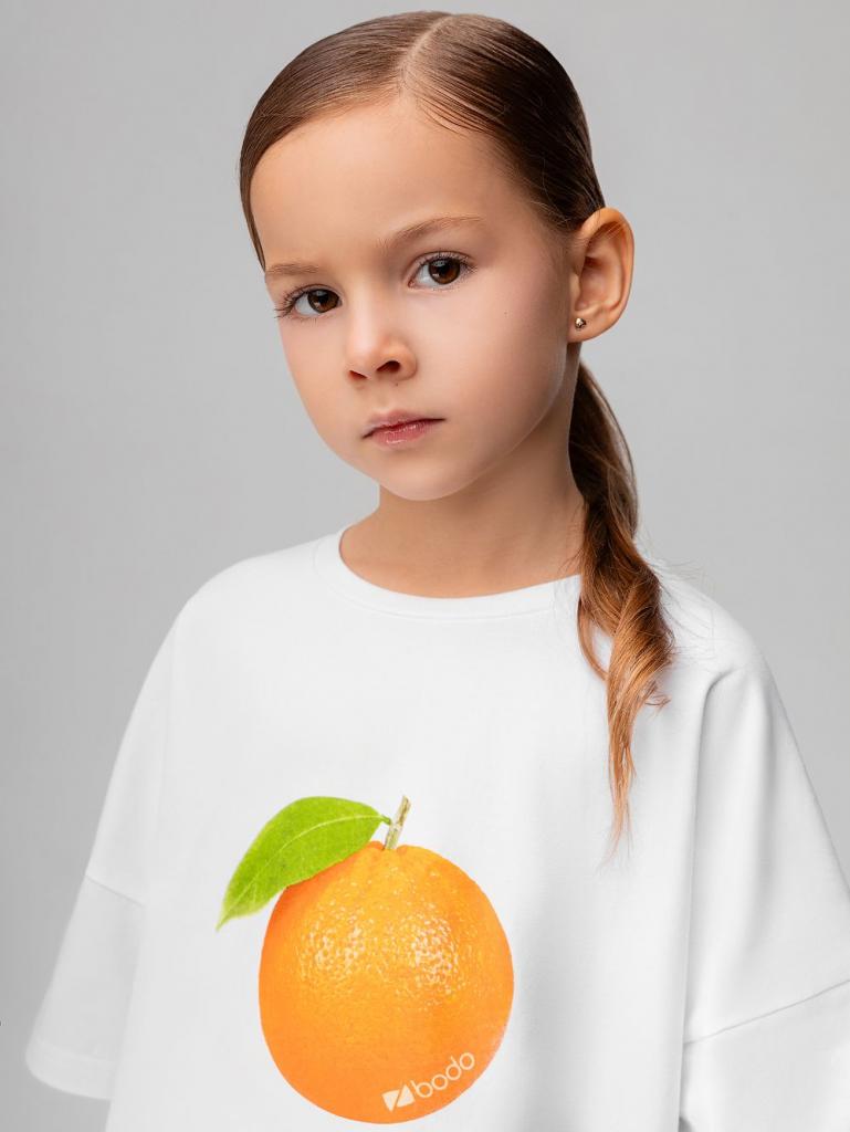Артикул 4-479MU Материал кулирная гладь Состав 92% хлопок 8% лайкра Свободная футболка с коротким рукавом. Горловина футболки округлой формы. Низ изделия прямой. На полочке располагается принт " Мандарин"