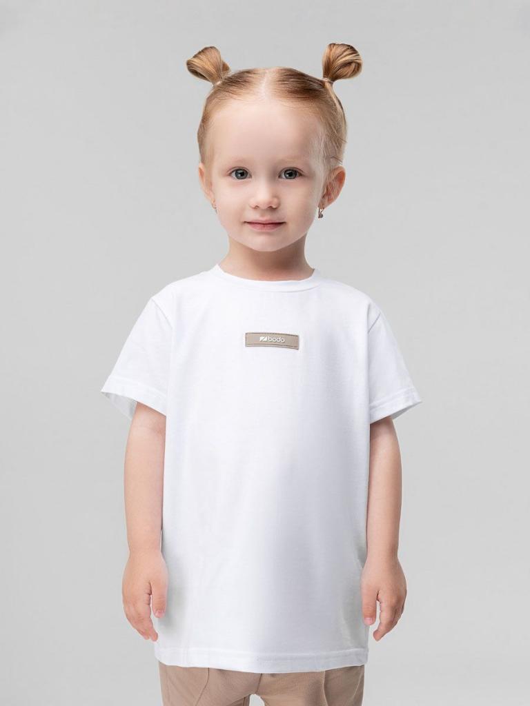 Артикул 54-31MU Материал кулирная гладь Состав 92% хлопок 8% лайкра Прямая футболка с короткими рукавами. Горловина округлой формы. Низ изделия прямой. ПВХ нашивка на полочке.