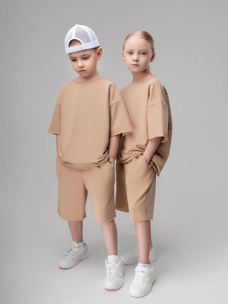 Артикул 11-289МU Состав 92% хлопок 8% лайкра Материал футер двухнитка Костюм для детей. Шорты, детали: свободный покрой, пояс - эластичная резинка, карманы с отрезным бочком. Футболка, детали: короткие рукава, свободный покрой, округлый вырез горловины. Состав: футер двухнитка 92% хлопок 8% лайкра.