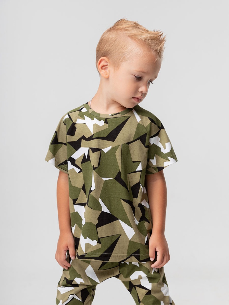 Материал кулирная гладь Состав 100% хлопок Костюм детский. Бриджи, детали: свободный покрой, пояс - эластичная резинка. Футболка, детали: короткие рукава, полуприлегающий покрой, округлый вырез горловины. Состав: кулирная гладь 100% хлопок