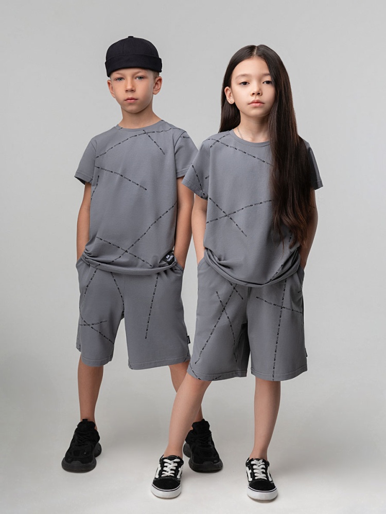 Материал кулирная гладь Состав 92% хлопок 8% лайкра Футболка для детей дошкольного возраста. Футболка свободного силуэта с втачным коротким рукавом. Горловина футболки округлой формы. Низ изделия прямой.Шорты для детей дошкольного возраста. Шорты свободные на притачном поясе с внутренней резинкой. Шорты с боковыми карманами и одним накладным карманом на правой задней половинке шорт.