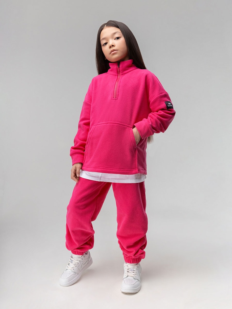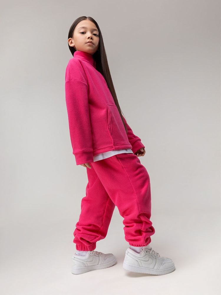 Материал флис Состав 100% полиэстер Костюм флисовый для детей дошкольного возраста. Толстовка без подкладки, прямого силуэта со спущенным плечом и втачными рукавами с притачной манжетой, воротник стойка, застёгивается на короткую молнию по центру полочки, на полочке расположен накладной карман — кенгуру. Брюки прямые свободные на притачном поясе с внутренней резинкой, на цельнокроеной манжете по низу изделия с внутренней резинкой, брюки без карманов. Состав: флис 100% полиэстер