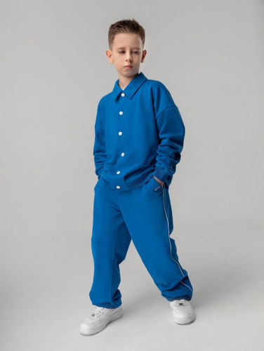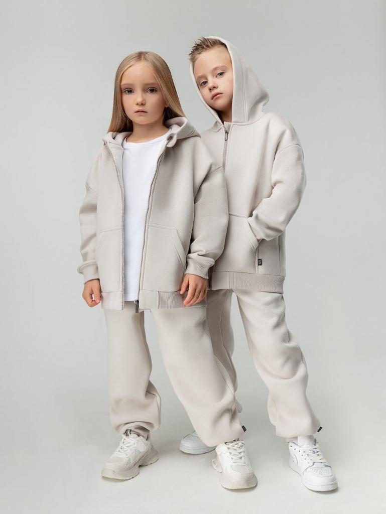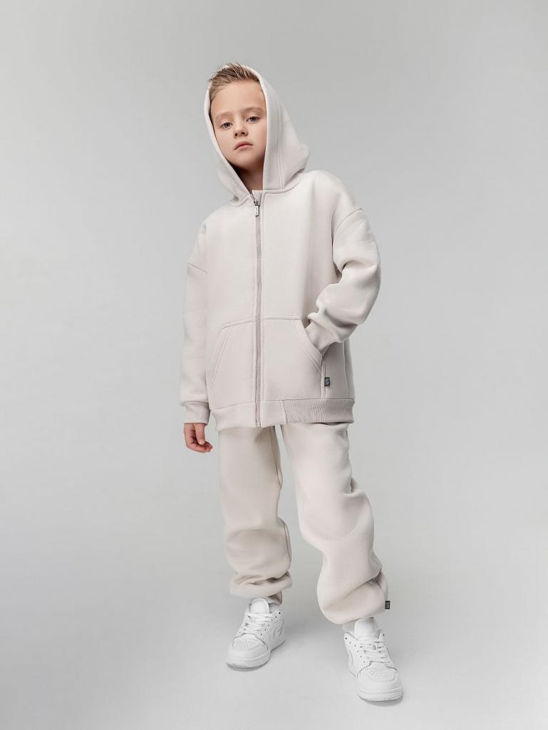 Артикул 11-569MU Состав 80% хлопок 20% полиэстер Материал футер трехнитка с начесом Костюм с начесом: толстовка и брюки. Толстовка с капюшоном на молнии, спущенное плечо, манжеты на рукавах. На полочке располагается карман «кенгуру». Прямые, свободные брюки на поясе с резинкой. Брюки с боковыми карманами.