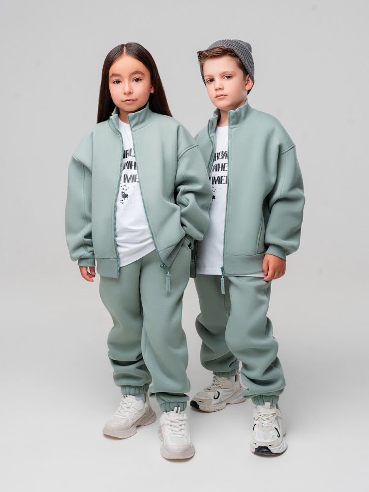 Материал футер трехнитка с начесом Состав 80% хлопок 20% полиэстер Костюм для детей дошкольного возраста. Толстовка свободного силуэта, с центральной бортовой застёжкой на тесьму молния, воротник стойка. Толстовка на притачном поясе по низу изделия, со спущенным плечом, с втачными рукавами с притачной манжетой.Брюки свободного силуэта, на притачном поясе с внутренней резинкой. Низ брюк с цельнокроеной манжетой на резинке. Брюки с боковыми карманами.