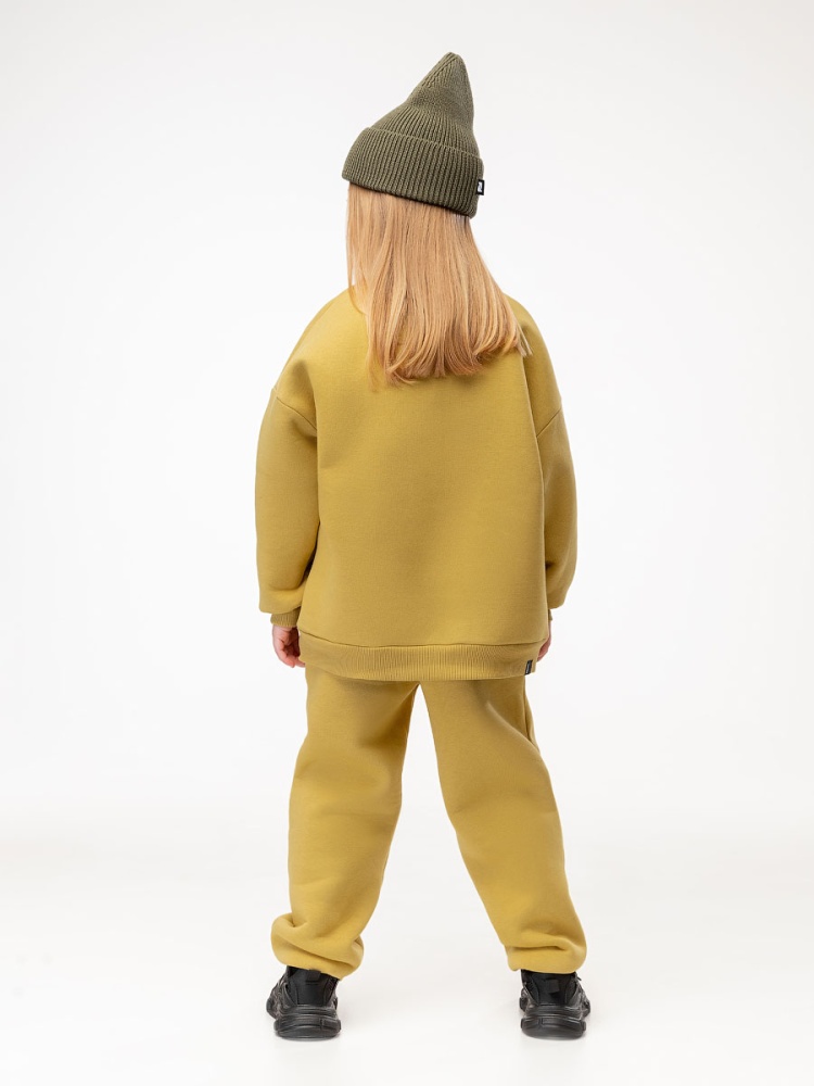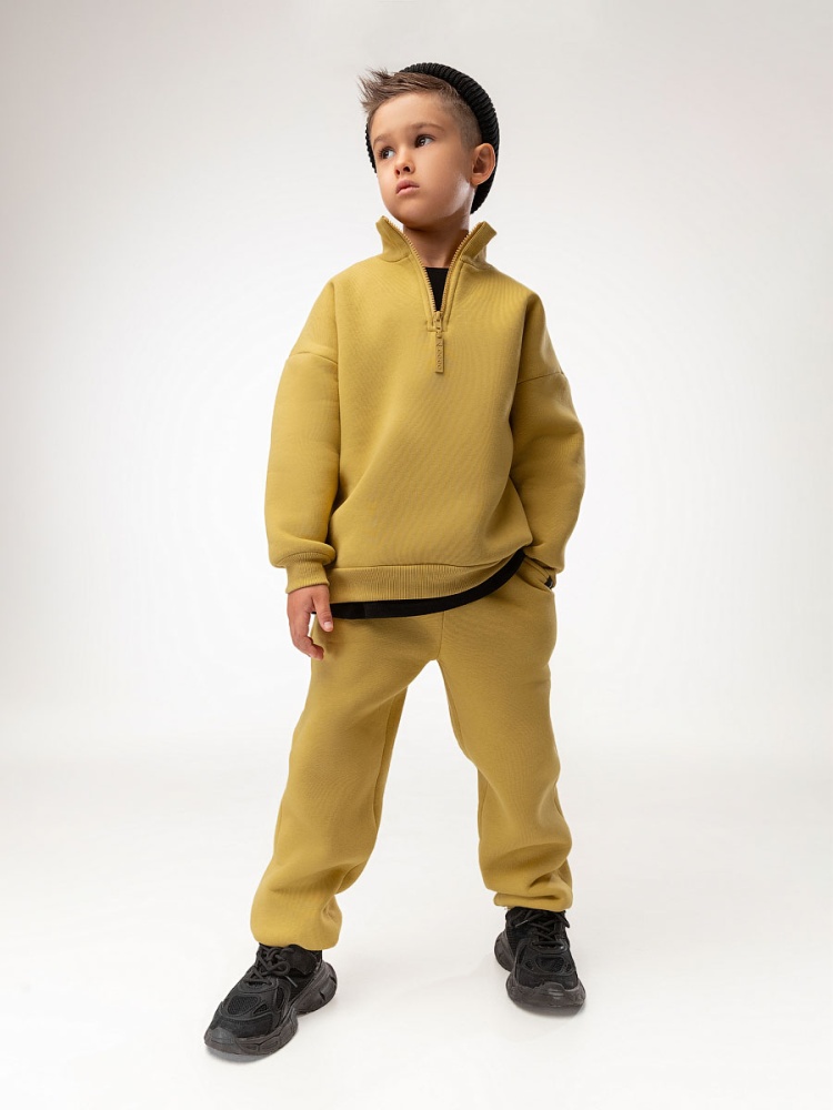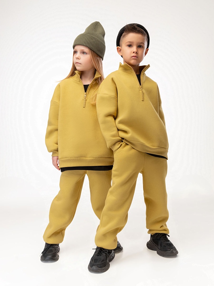 Материал футер трехнитка с начесом Состав 80% хлопок 20% полиэстер Костюм для детей дошкольного возраста. Толстовка свободного силуэта, со спущенным плечом и втачными рукавами с притачной манжетой. Воротник стойка, застёжка на короткую молнию по центру полочки.Брюки прямые свободные на притачном поясе с внутренней резинкой, на притачной манжете по низу изделия. С боковыми карманами.