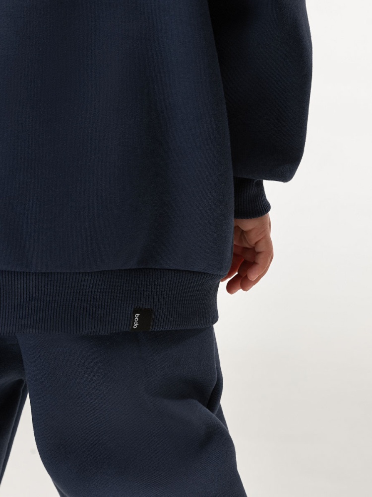 Материал футер трехнитка с начесом Состав 80% хлопок 20% полиэстер Костюм для детей дошкольного возраста. Толстовка свободного силуэта, со спущенным плечом и втачными рукавами с притачной манжетой. Воротник стойка, застёжка на короткую молнию по центру полочки.Брюки прямые свободные на притачном поясе с внутренней резинкой, на притачной манжете по низу изделия. С боковыми карманами.