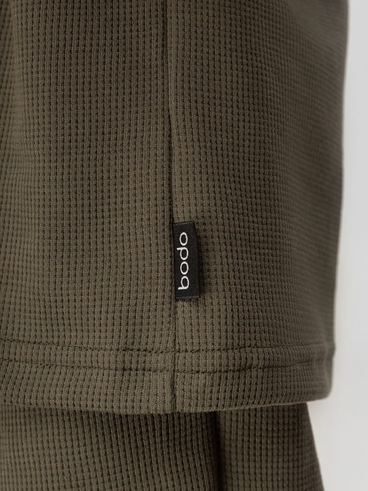 Материал кулирная гладь Состав 92% хлопок 8% лайкра Костюм из вафельной кулирки: футболка и шорты. Футболка свободного силуэта с коротким рукавом. Шорты прямые, свободные с боковыми карманами.