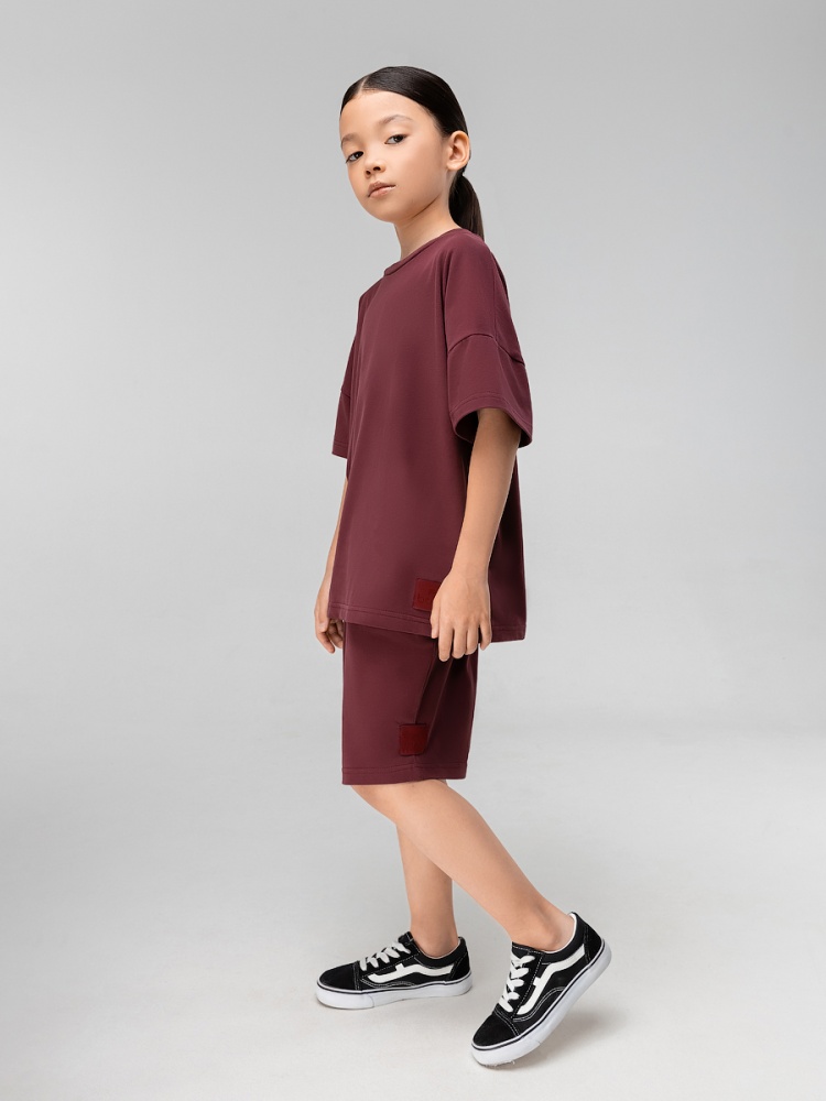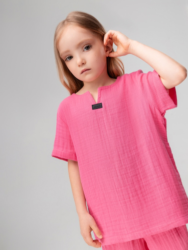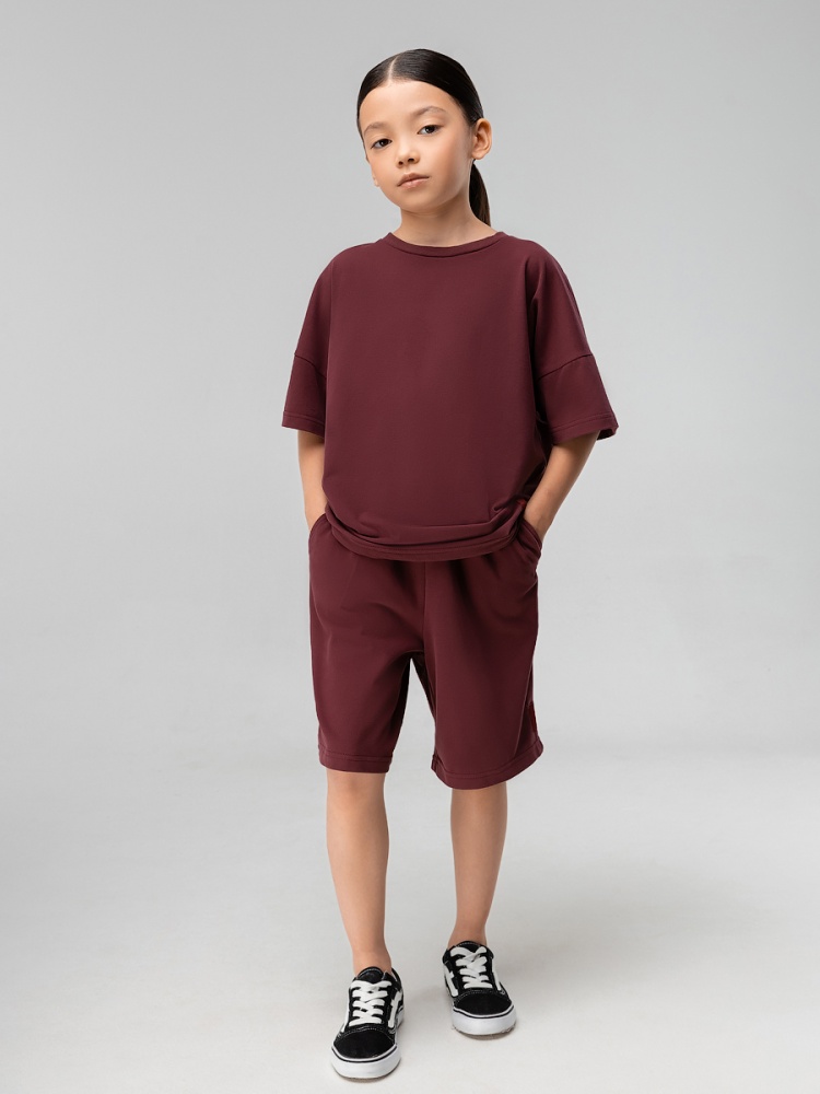 Материал кулирная гладь Состав 92% хлопок 8% лайкра Костюм с эффектом фрчи: футболка и шорты. Свободная футболка с коротким рукавом и прямые шорты с боковыми карманами, пояс на резинке.