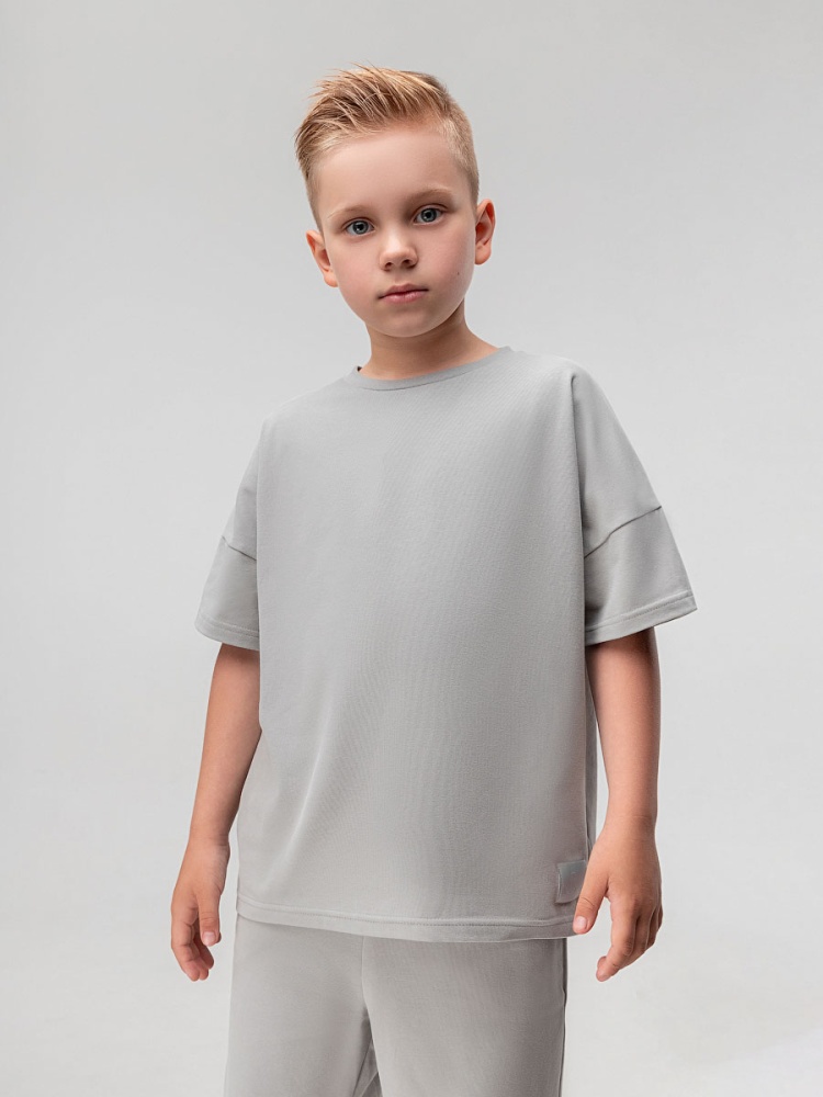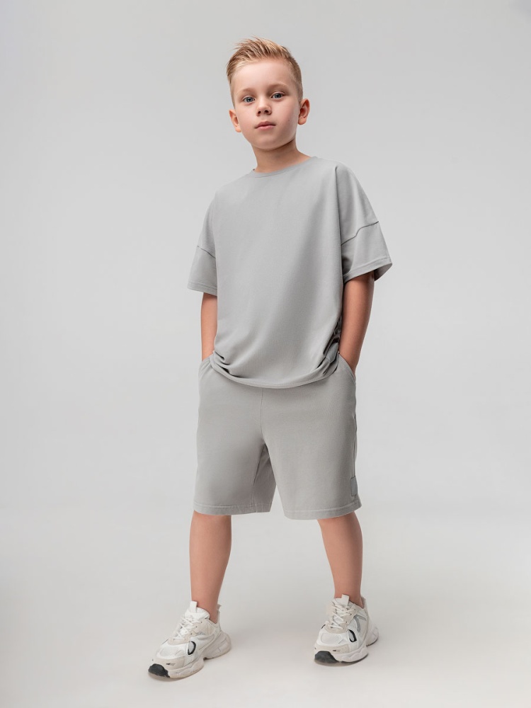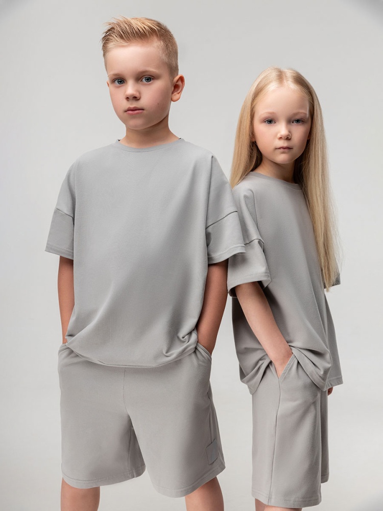 Материал кулирная гладь Состав 92% хлопок 8% лайкра Костюм с эффектом фрчи: футболка и шорты. Свободная футболка с коротким рукавом и прямые шорты с боковыми карманами, пояс на резинке.