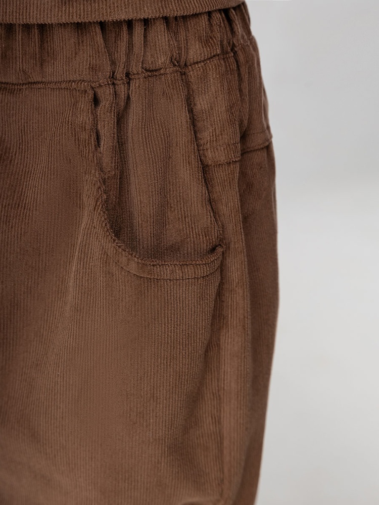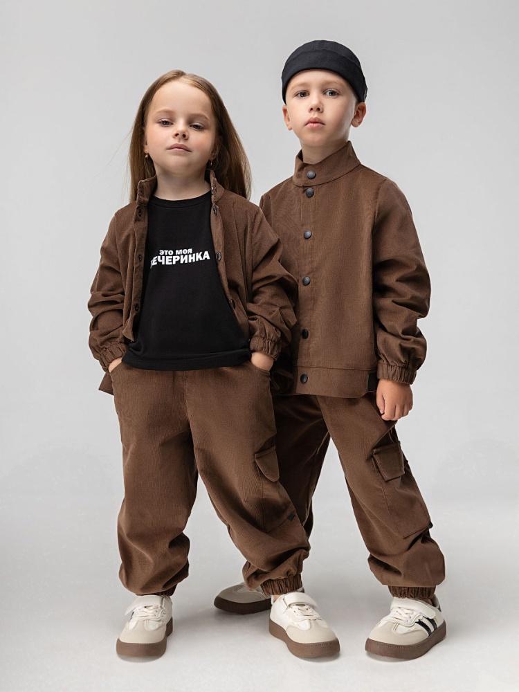 Материал микровельвет Состав 100% хлопок Костюм вельветовый: рубашка и брюки. Прямая рубашка без подкладки на кнопках, с воротником стойка, длинные рукава на резинке. Свободные брюки, пояс с резинкой, по низу брюки на резинки. Брюки с карманами двух типов: классические боковые и один накладной.
