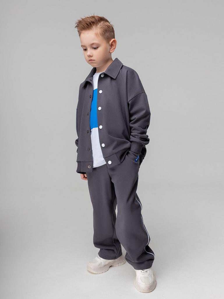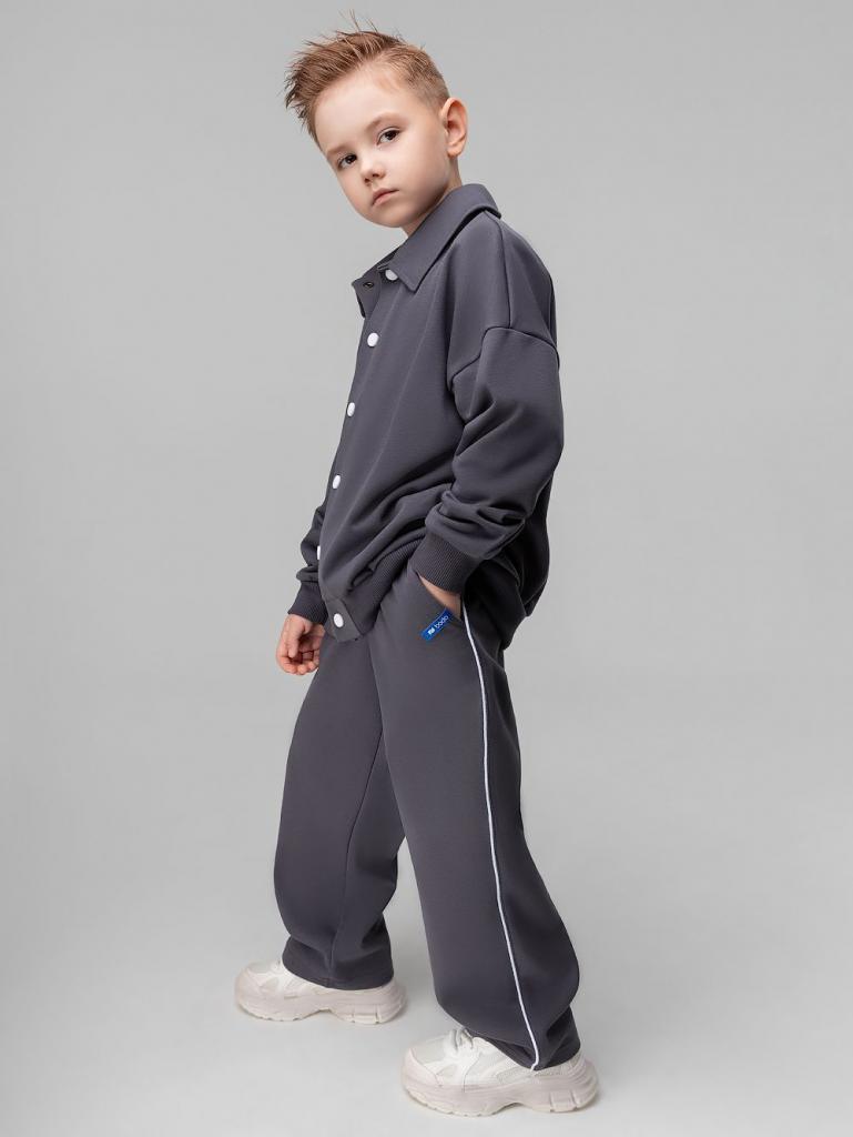 Артикул 11-651MU Материал футер трехнитка петля Состав 80% хлопок 20% полиэстер Костюм: толстовка и брюки. Свободная толстовка прямого силуэта на кнопках, с длинным рукавом с манжетой. Толстовка с отложным воротником. Толстовка с поясом по низу изделия. Брюки прямые свободные на поясе с внутренней резинкой. С боковыми карманами. Брюки оформлены атласным кантом по боковым швам.