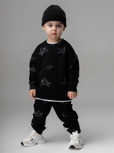 Артикул 21-129MU Материал футер двухнитка с начесом Состав 92% хлопок 8% лайкра Костюм для детей ясельного возраста. Толстовка прямого силуэта свободная с центральной бортовой застёжкой на тесьму-молния, рукавом реглан, с притачной манжетой. Толстовка с поясом по низу изделия. Горловина округлой формы, оформлена рибаной. Брюки прямые на притачном поясе с внутренней резинкой. Брюки с манжетой.
