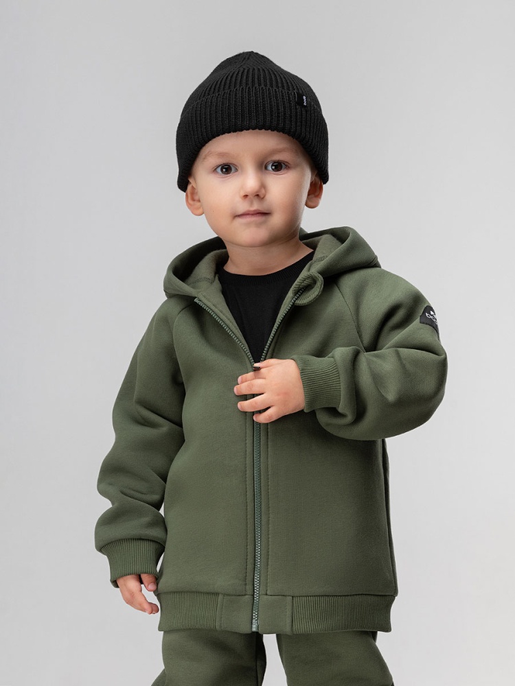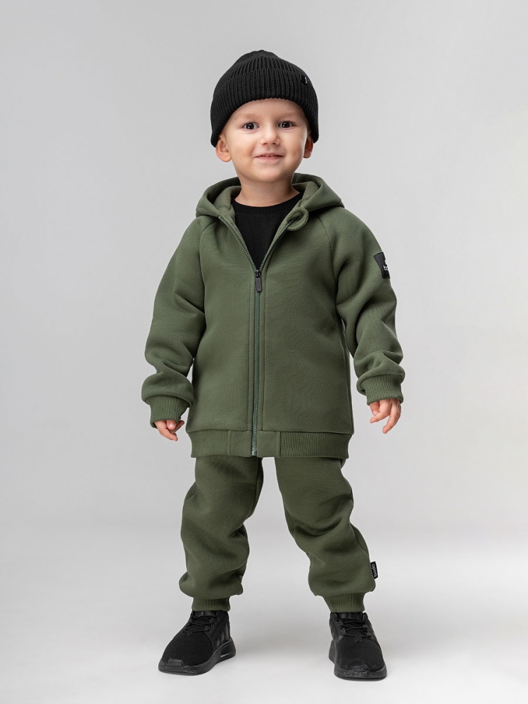 Артикул 21-23MU Материал футер трехнитка с начесом Состав 80% хлопок 20% полиэстер Костюм детский в начесом: толстовка и брюки. Толстовка с несъемный капюшоном на молнии, рукава на манжетах. Брюки- джоггеры, детали: пояс - эластичная резинка, низ изделия- манжеты.