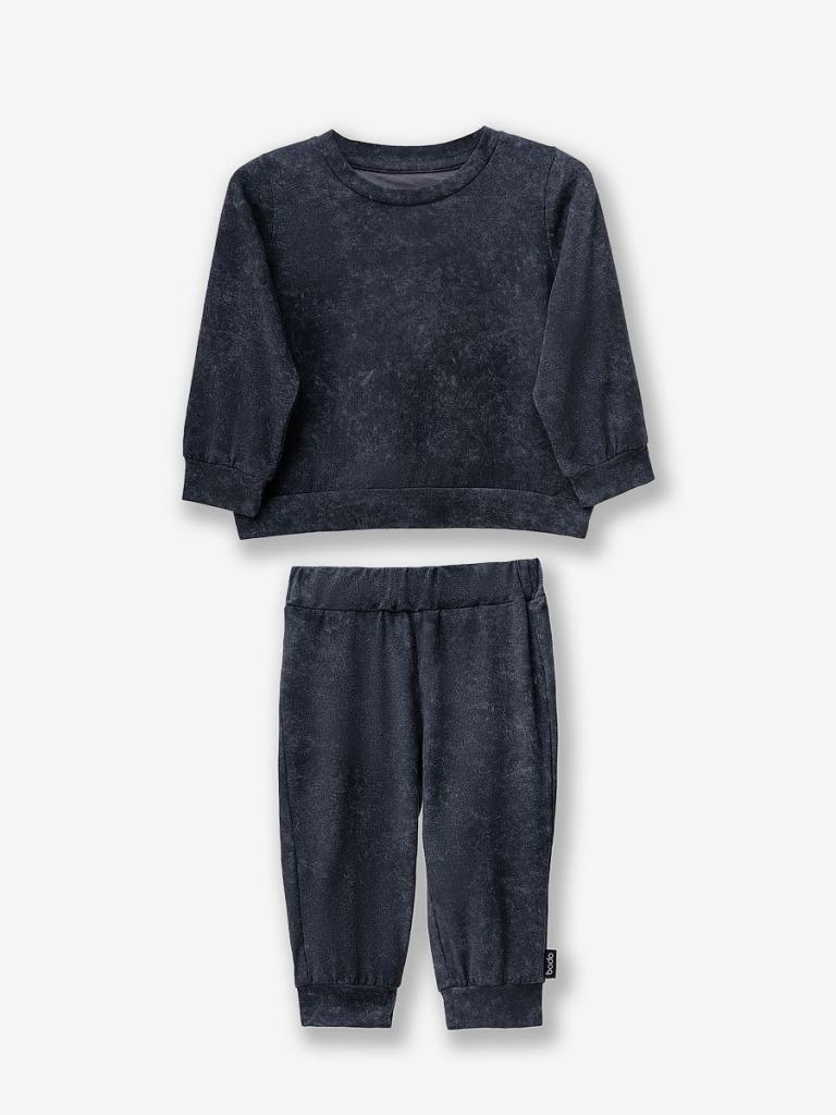Артикул 21-98МU Материал кулирная гладь Состав 92% хлопок 8% лайкра Костюм для детей ясельгого возраста. Брюки прямые на притачном поясе с внутренней резинкой. Брюки с манжетой. Свитшот без подкладки, прямого силуэта, с притачным поясом по низу изделия. Свитшот с втачными рукавами с притачной манжетой. Горловина округлой формы.