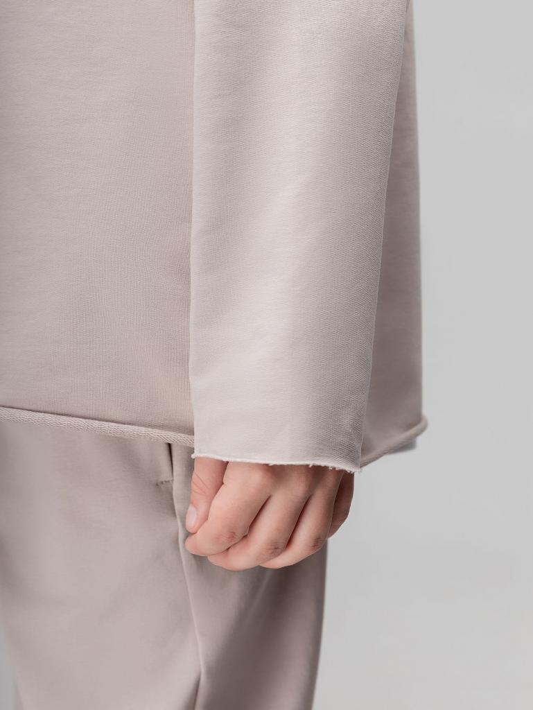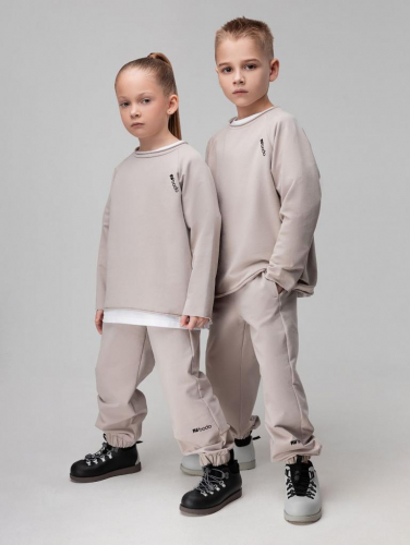 Артикул 11-666MU Состав 92% хлопок 8% лайкра Материал футер двухнитка Костюм: лонгслив и брюки. Свободный лонгслив с необработанными краями. Горловина округлой формы. Прямые, свободные брюки на поясе с внутренней резинкой. Низ брюк с манжетой на резинке. Брюки с боковыми карманами в боковых швах.