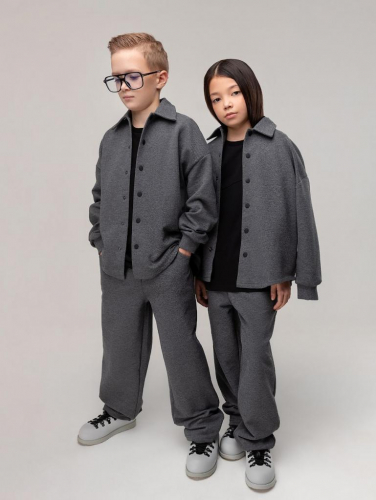 Артикул 11-658MU Состав 92% хлопок 8% лайкра Материал футер двухнитка Костюм: толстовка и брюки. Свободная толстовка со спущенным плечом, рукава с манжетой. Воротник стойка, застёжка на короткую молнию по центру полочки. Брюки свободного силуэта, на поясе с внутренней резинкой. Низ брюк с манжетой на резинке. Брюки с боковыми карманами.