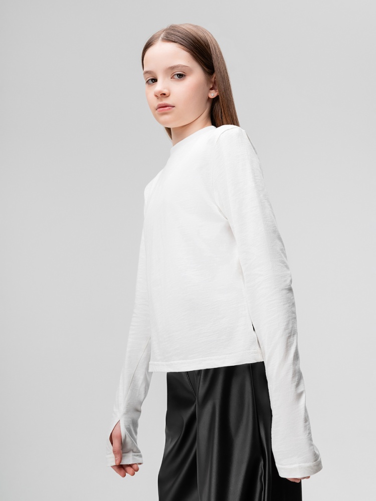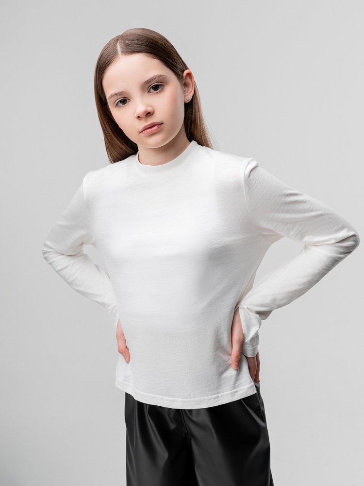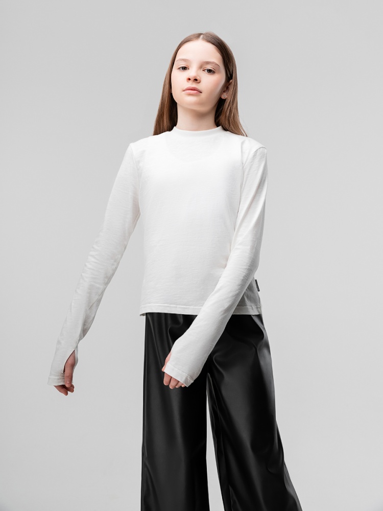 Материал кулирная гладь Состав 100% хлопок Базовый лонгслив с длинным рукавом и отверстием под большой палец. Воротник стойка.