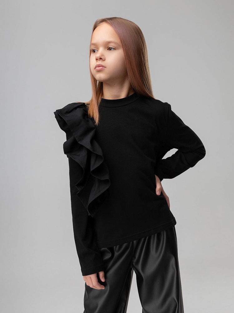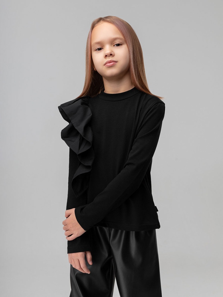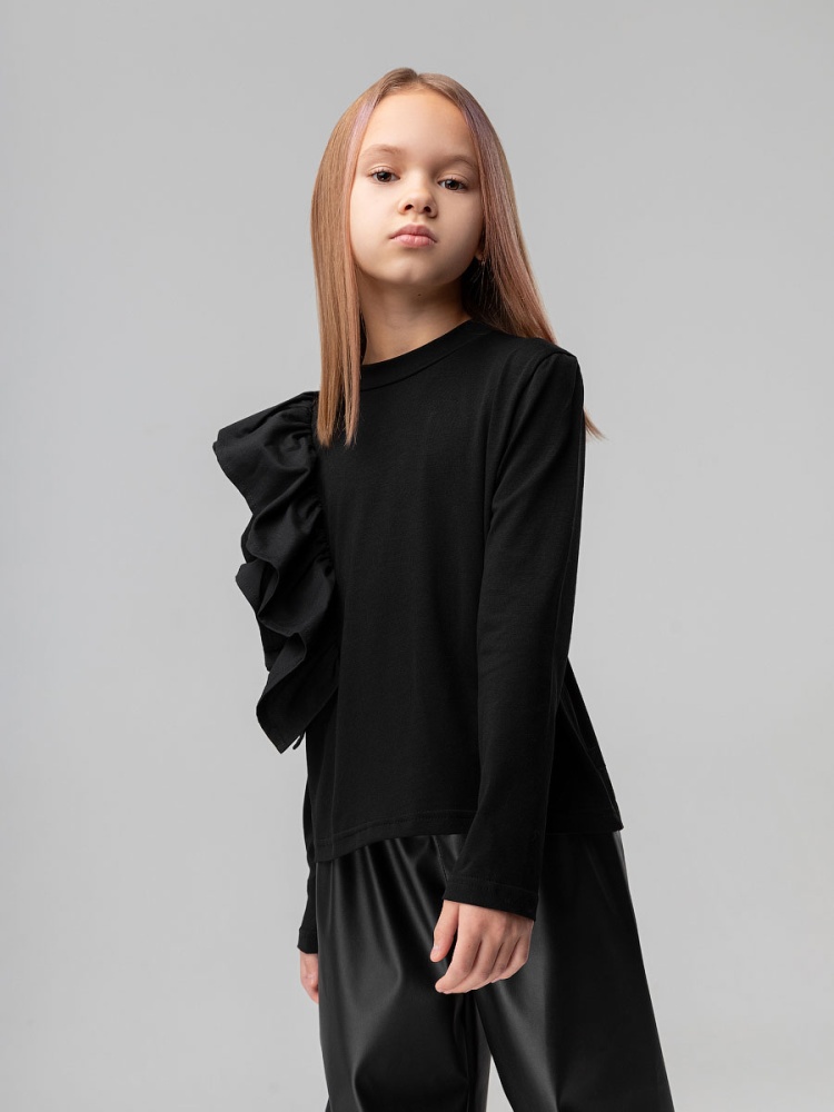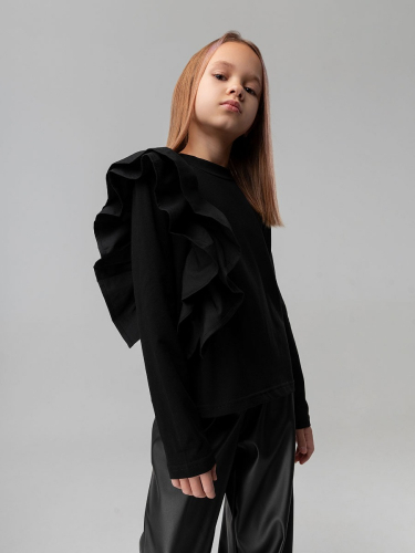 Лонгслив с объёмным воланом 7-296MU; черный