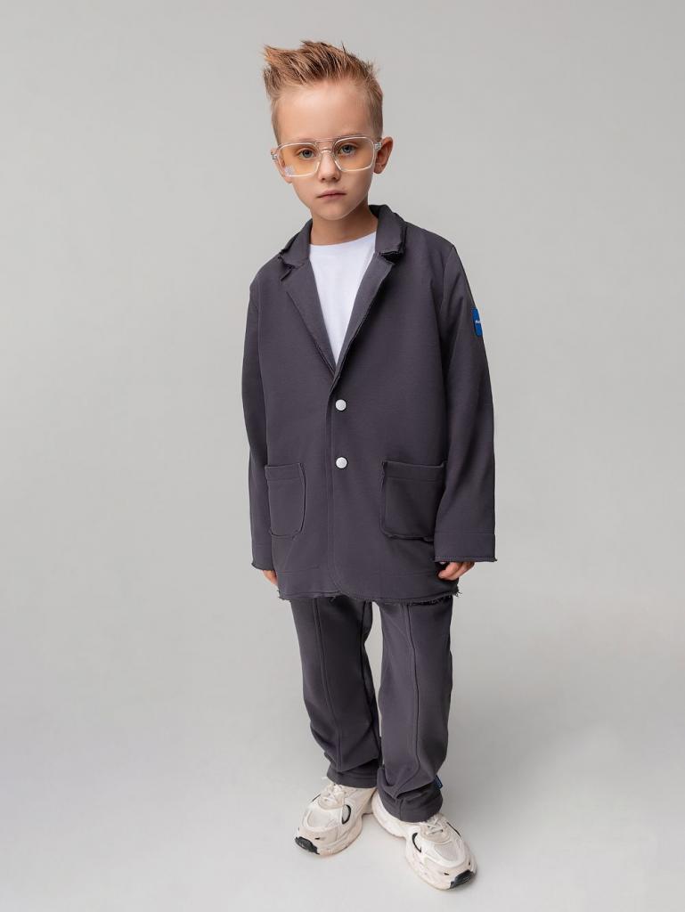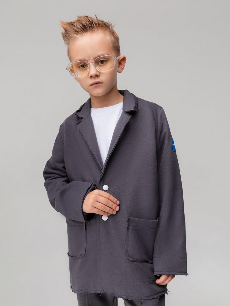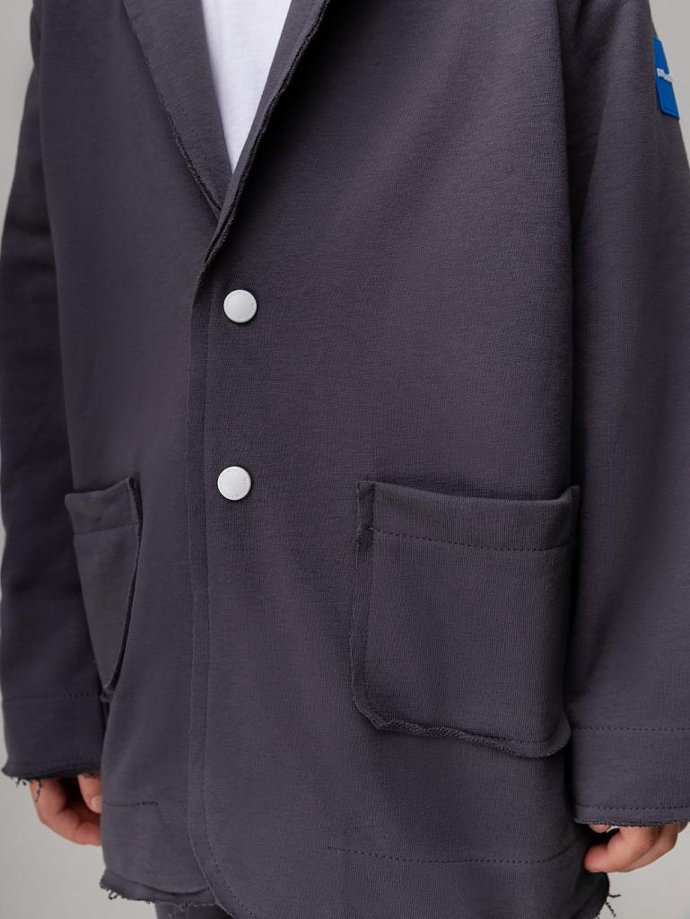 Артикул 20-270MU Материал футер трехнитка петля Состав 80% хлопок 20% полиэстер Пиджак с необработанными краями на кнопках. Прямой пиджак без подкладки, отложной воротник, на полочке два накладных кармана с необработанными краями.
