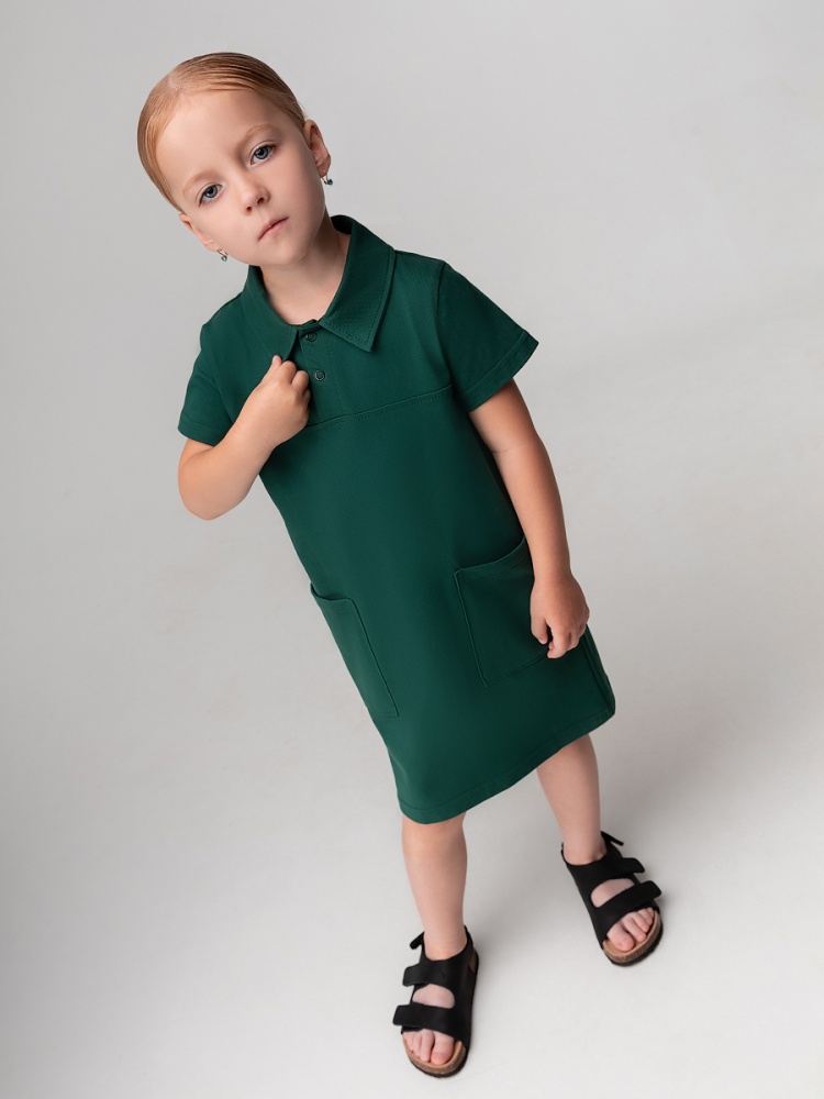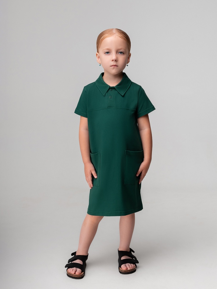 Материал кулирная гладь Состав 92% хлопок 8% лайкра Платье поло на кнопках с коротким рукавом. По бокам 2 накладных кармана без клапана.