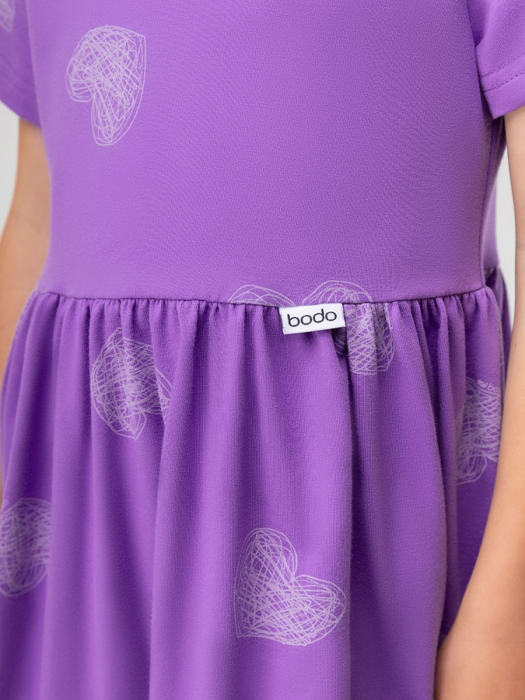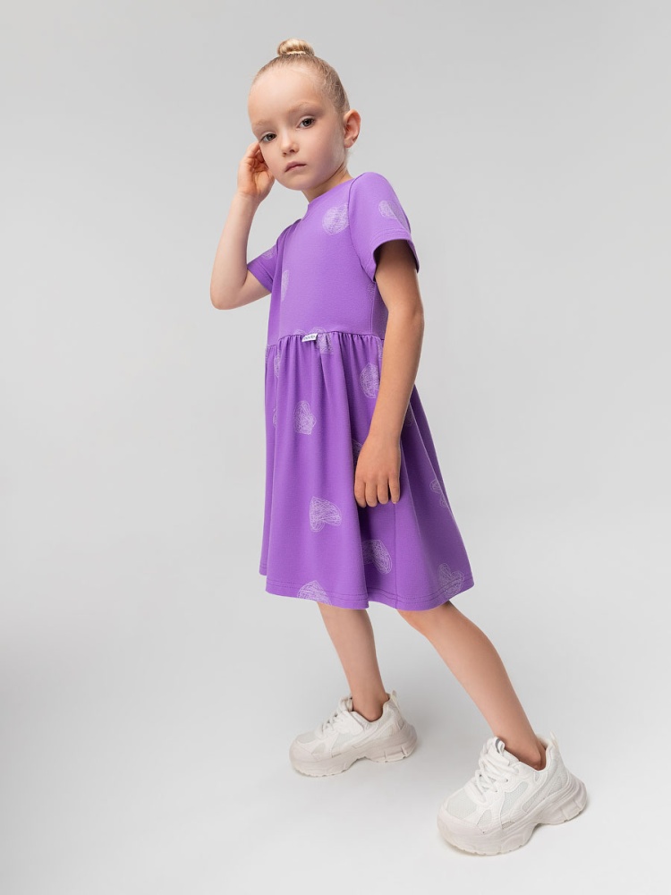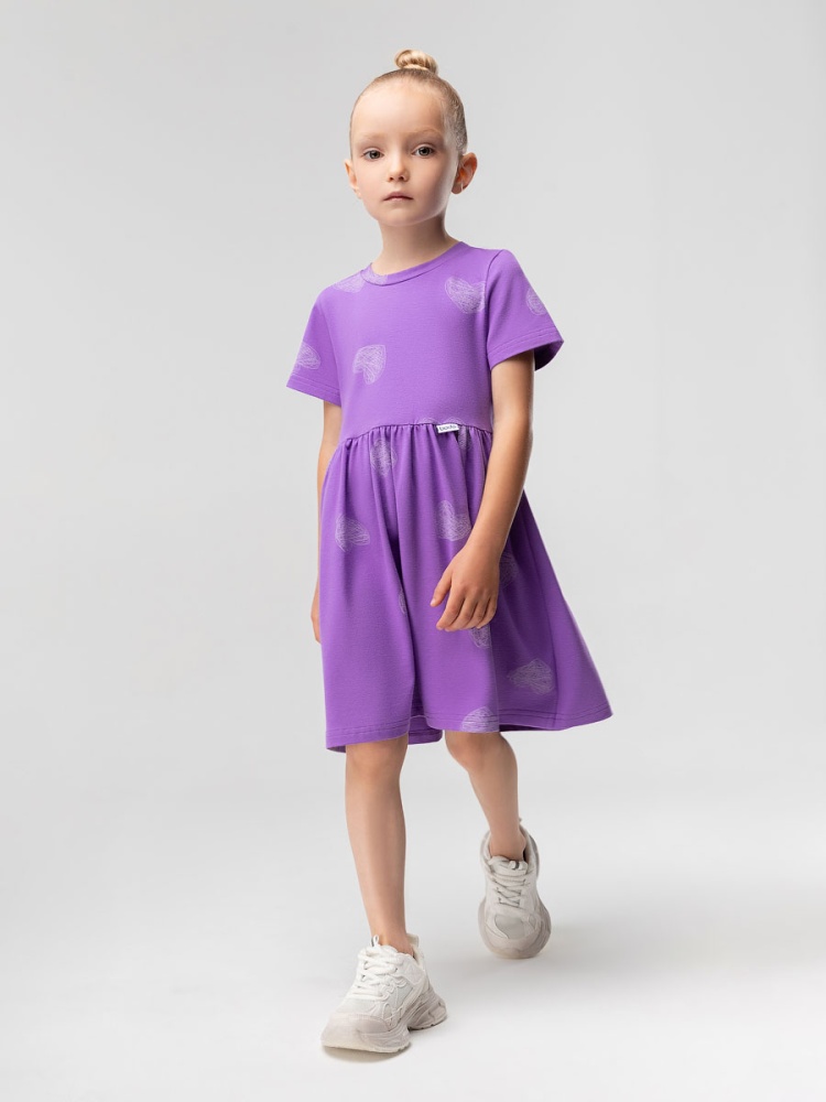 Материал кулирная гладь Состав 92% хлопок 8% лайкра Трапециевидное платье с короткими рукавами. Платье отрезное по линии талии, нижняя часть со сборкой.