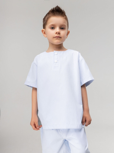 Материал футер двухнитка Состав 92% хлопок 8% лайкра Рубашка прямого кроя на кнопках с коротким рукавом. Воротник стойка на кнопках. Спереди обьемный накладной карман из дюспы.