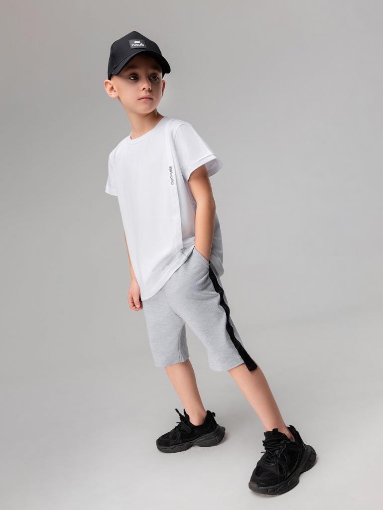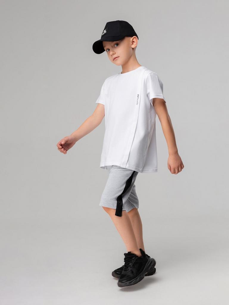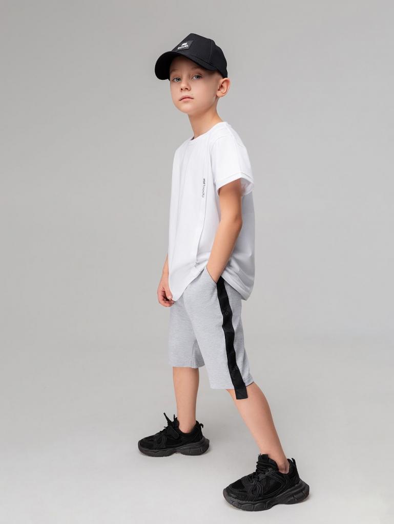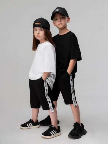Артикул 8-64МU Состав 92% хлопок 8% лайкра Материал футер двухнитка Свободные прямые шорты с брендированной лентой по бокам. детские. Шорты на поясе с эластичной резинкой, карманы с отрезным бочком.