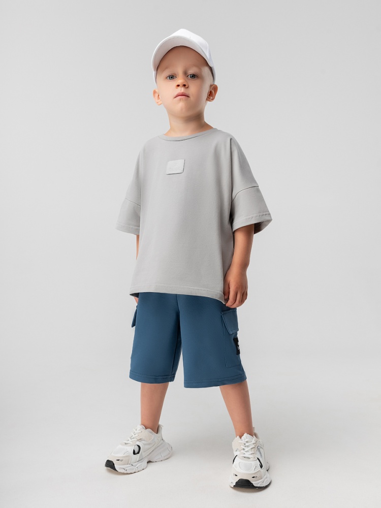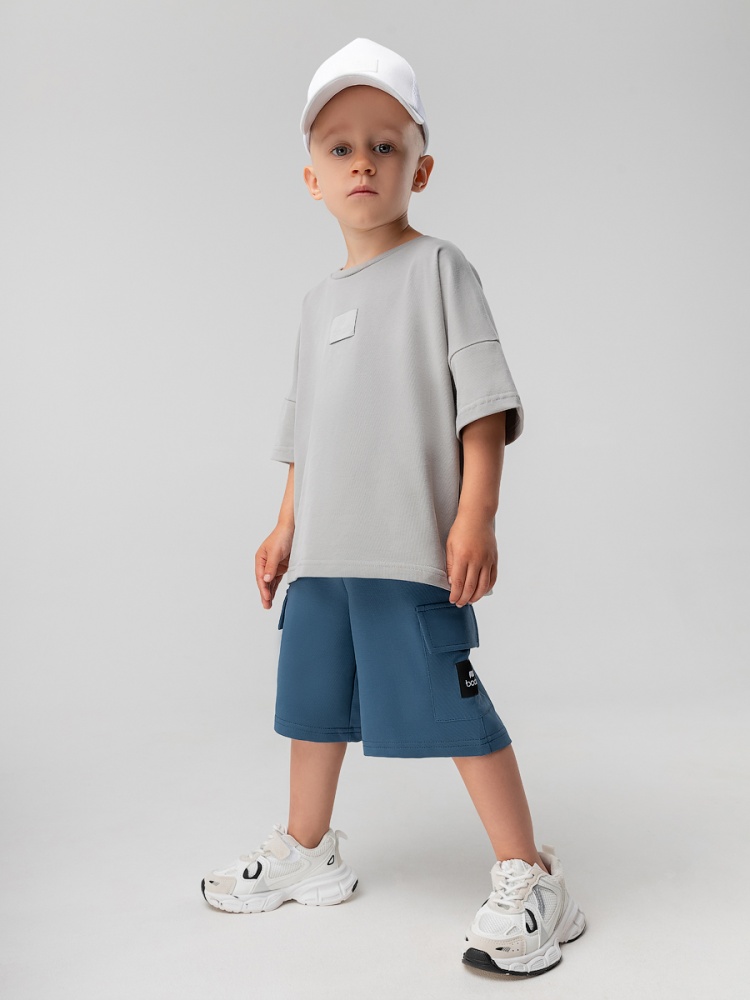 Материал футер двухнитка Состав 92% хлопок 8% лайкра Шорты для детей. Шорты свободные на притачном поясе с внутренней резинкой, с накладными карманами на боковых швах. Состав: футер двухнитка 92% хлопок 8% лайкра