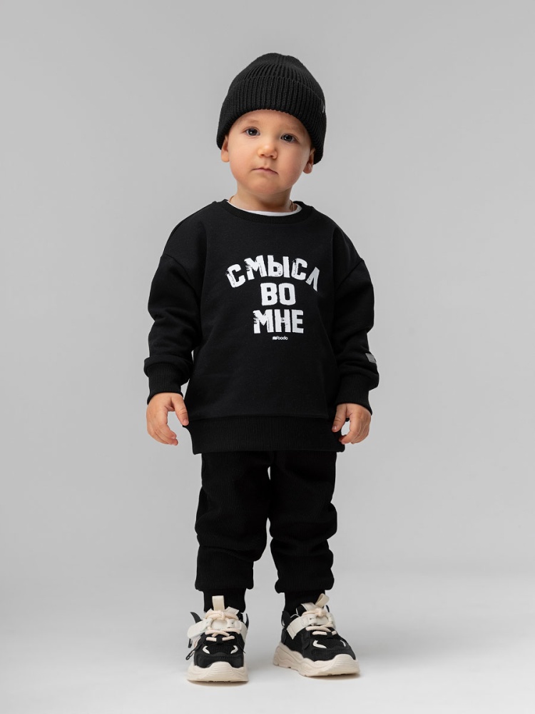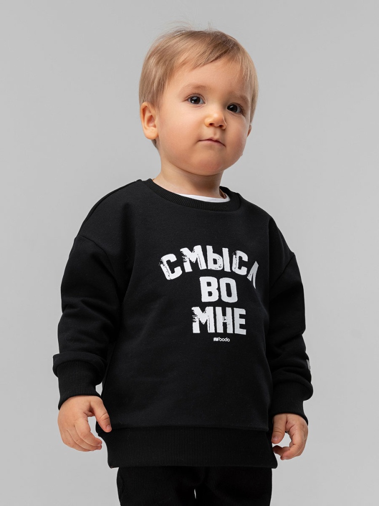Артикул 55-15MU Материал футер двухнитка с начесом Состав 92% хлопок 8% лайкра Свитшот для малышей с принтом. Свитшот с длинными рукавами, со спущенным плечом, резинка по низу.