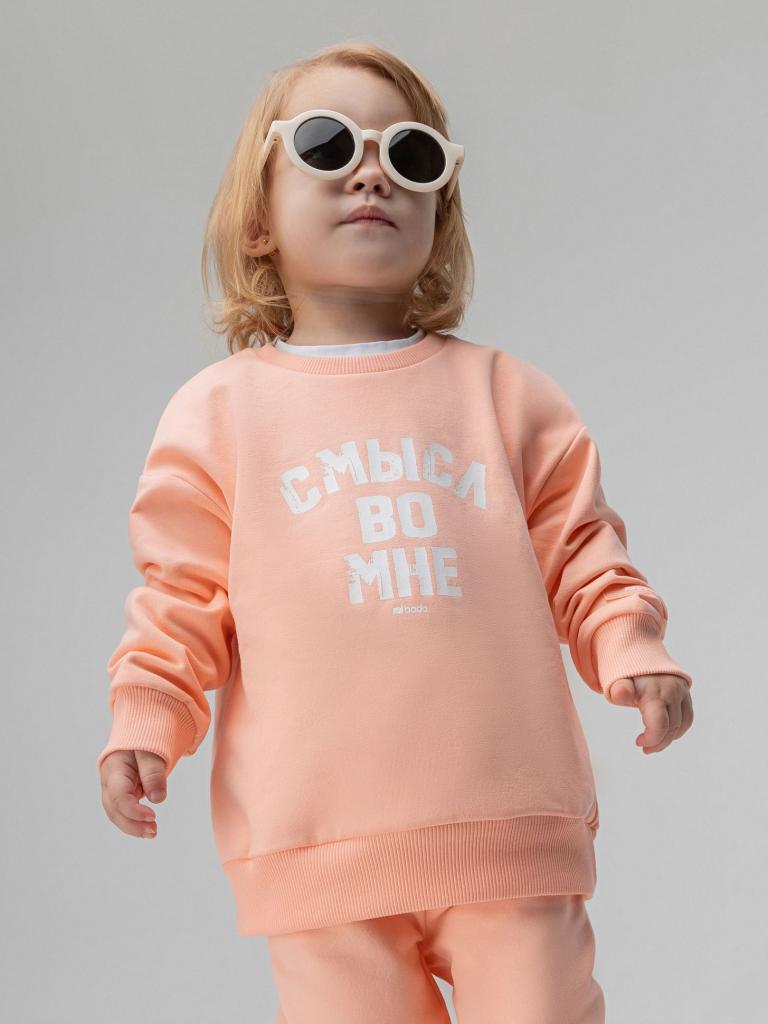 Артикул 55-15MU Материал футер двухнитка с начесом Состав 92% хлопок 8% лайкра Свитшот для малышей с принтом. Свитшот с длинными рукавами, со спущенным плечом, резинка по низу.