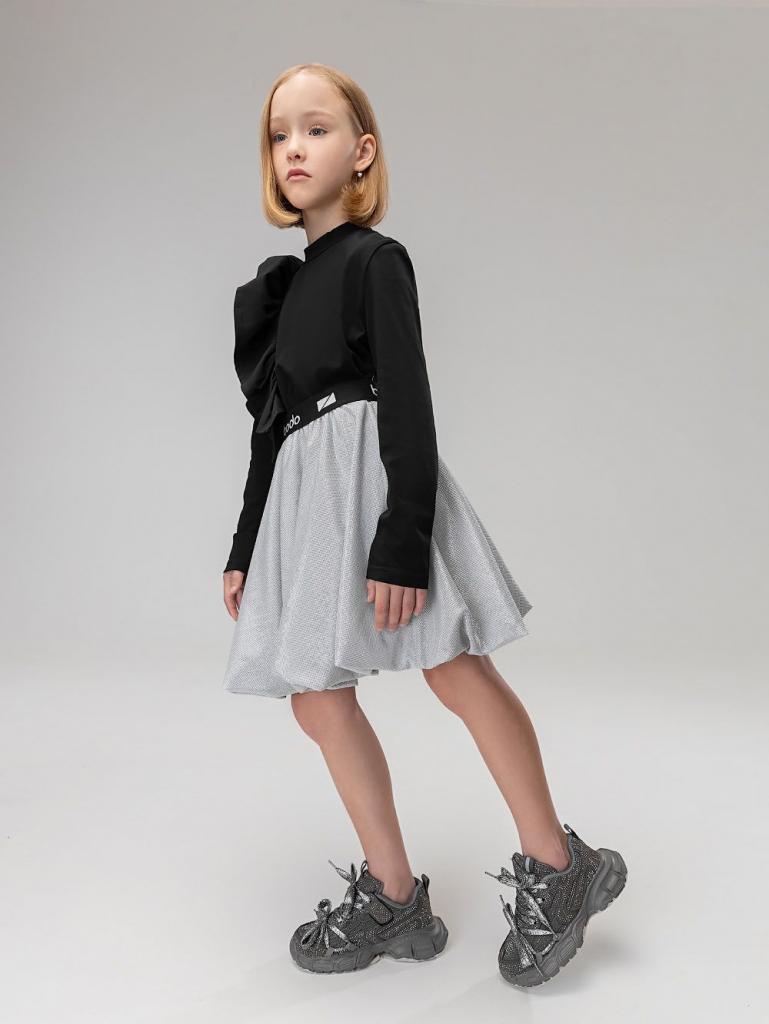 Артикул 16-21MD Материал 50% хлопок 50% полиэстер Состав 50% хлопок 50% полиэстер Юбка-баллон на подкладке из хлопка. Юбка пышная, с воланами на эластичном поясе. Трикотажное полотно с люрексом, средней плотности с красивым переливающимся блеском.