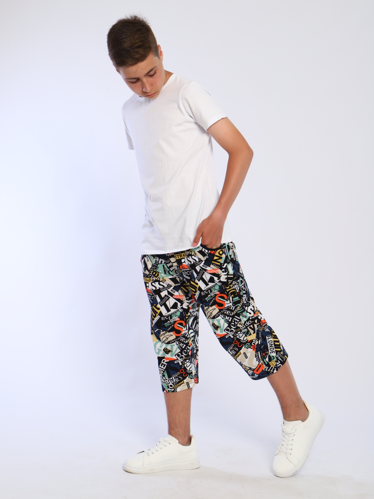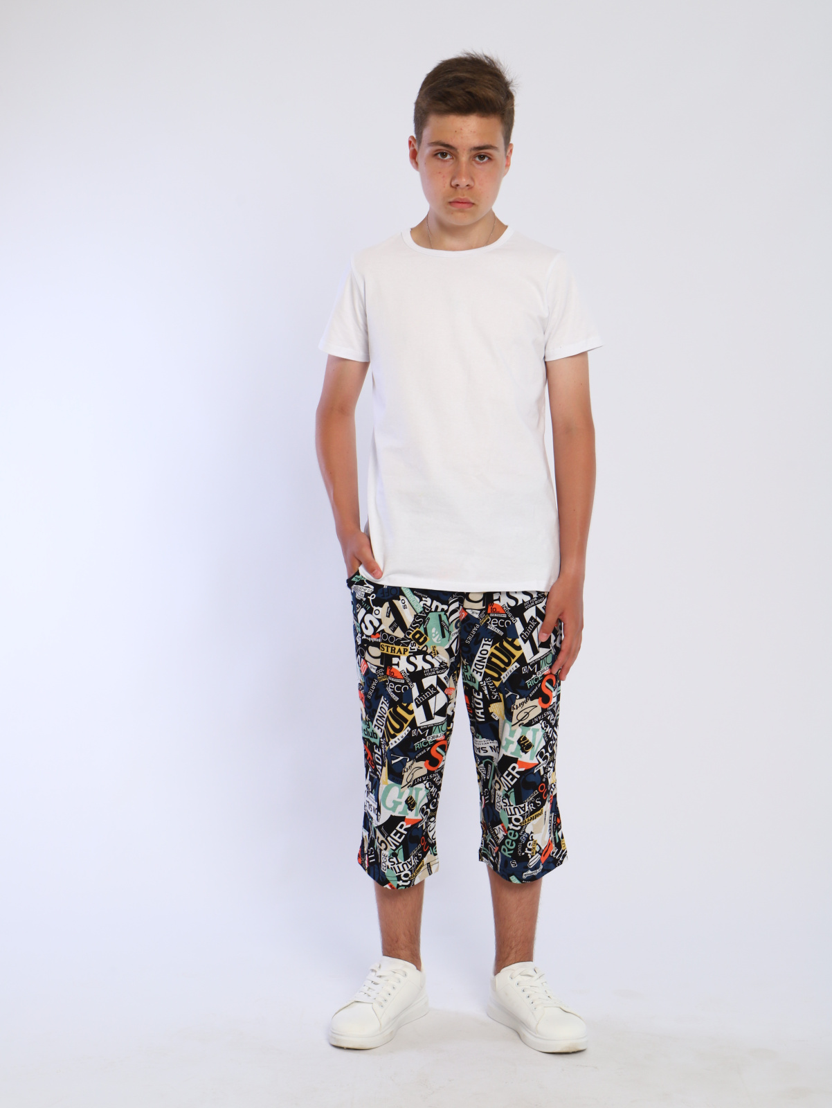 Бриджи для мальчика-подростка. Летние шорты для мальчика подростка сшиты из натурального трикотажа яркой летней расцветки. Незаменимы для прогулок, активных спортивных занятий, поездок. Спортивные шорты подойдут для групповых игр, таких как баскетбол, волейбол. Кататься на скейтборде, самокате или велосипеде жарким летим днем в таких бриджах одно удовольствие! Можно носить подростковые шорты как домашнюю одежду. Укороченные брючки отличаются великолепными техническими характеристиками и имеют целый ряд преимуществ. Легкие спортивки сшиты из натуральной ткани-кулирка- экологически чистый материал, не вызывает аллергических реакций, что особенно ценно для детской одежды. Стильные бриджи на мальчика с ярким рисунком, прямого кроя с поясом на резинке со шнурком, в боковых швах карманы. Детские шорты сочетаются как с футболками для подростков, майками, так и с детскими толстовками, худи, свитшотами, парками. . Идеальный подарок для подростка!