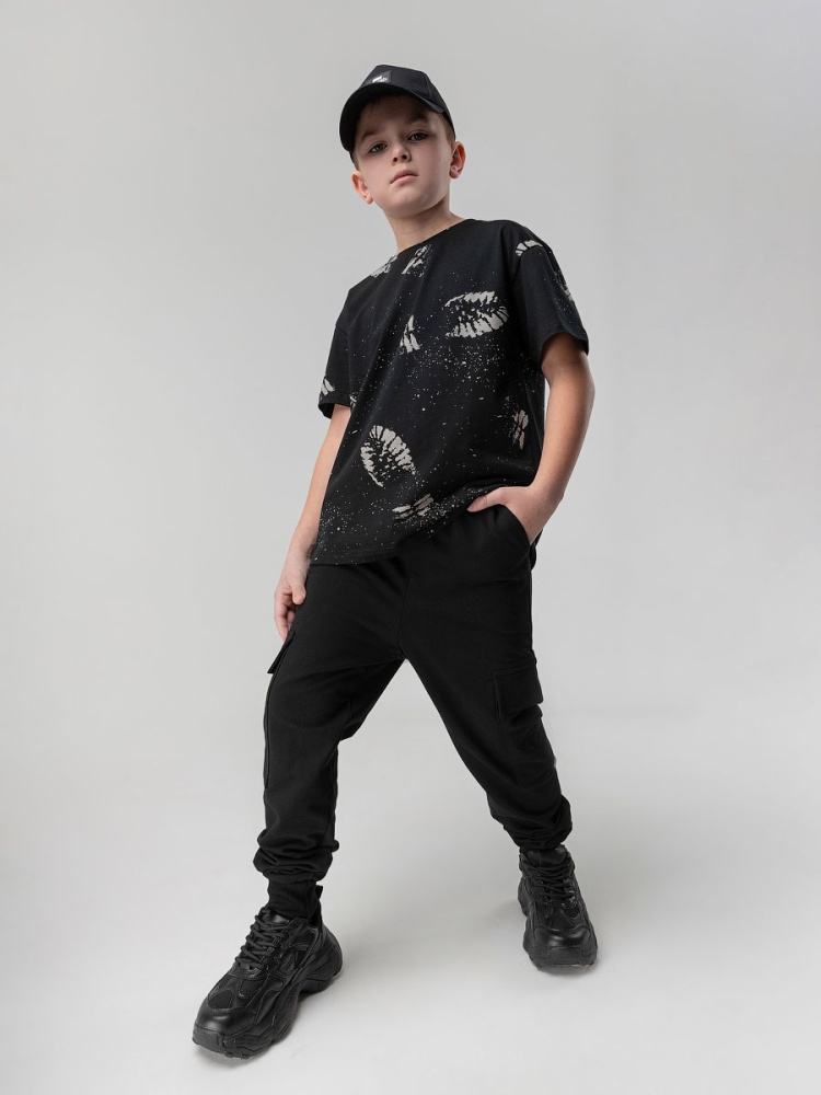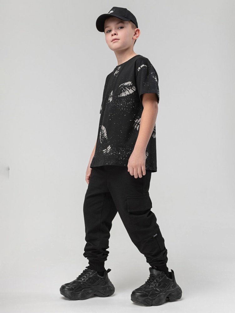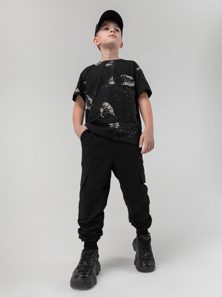 Материал футер двухнитка Состав 92% хлопок 8% лайкра высота упаковки, мм 3 Брюки- джоггеры. Детали: свободный покрой, пояс - эластичная резинка, низ изделия- манжеты, карманы с отрезным бочком. Состав: футер двухнитка 92% хлопок 8% лайкра