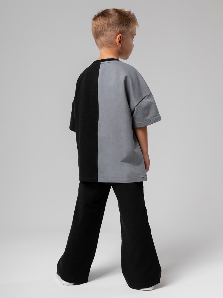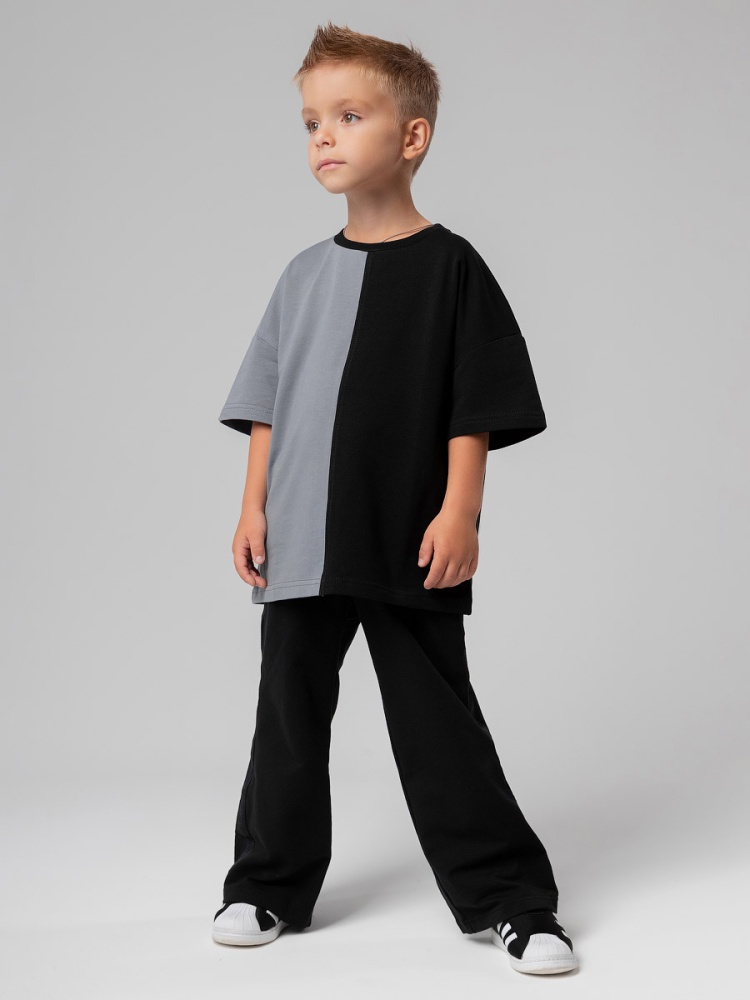 Материал футер двухнитка Состав 92% хлопок 8% лайкра Брюки детские свободного силуэта. Детали: свободный покрой, пояс - эластичная резинка, карманы с отрезным бочком. Состав: футер двухнитка 92% хлопок 8% лайкра