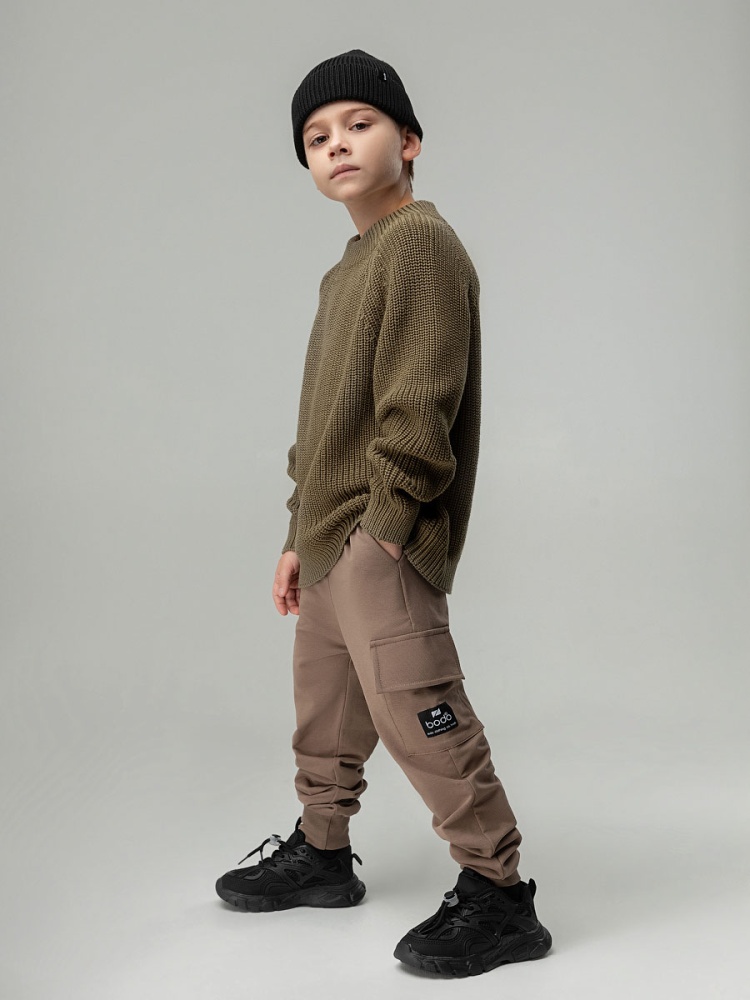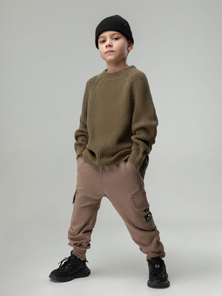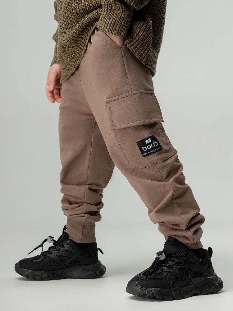 Материал футер двухнитка Состав 92% хлопок 8% лайкра Брюки- джоггеры детские. Детали: полуприлегающий покрой, пояс - эластичная резинка, низ изделия- манжеты, накладные карманы. Состав: футер двухнитка 92% хлопок 8% лайкра