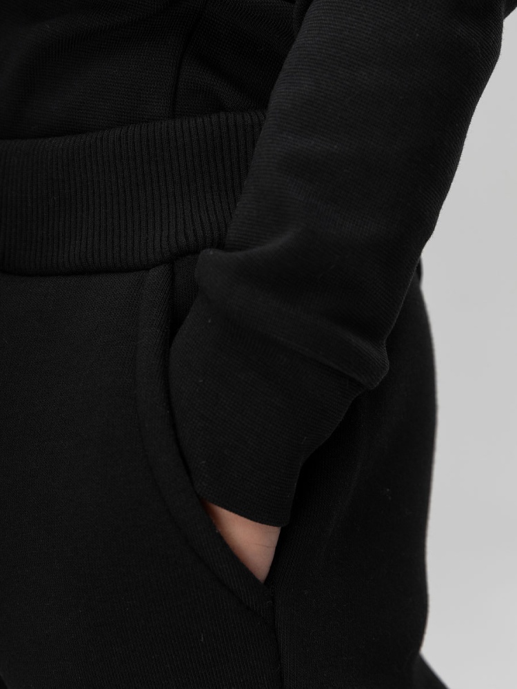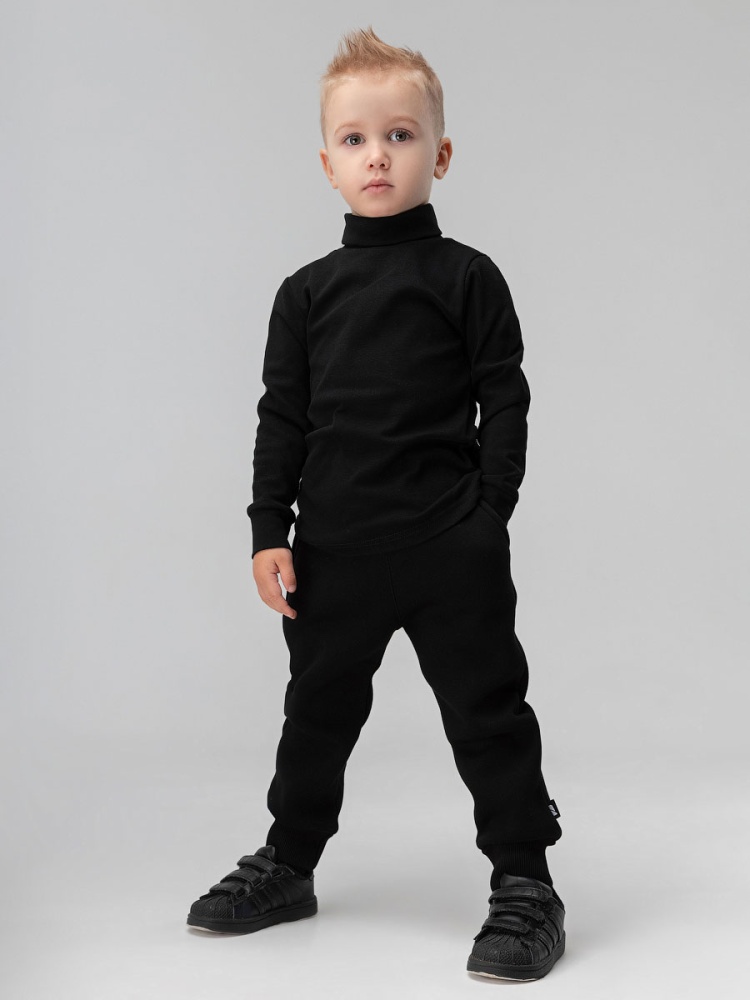 Материал футер трехнитка с начесом Состав 80% хлопок 20% полиэстер высота упаковки, мм 2 Брюки- джоггеры детские. Детали: полуприлегающий покрой, пояс - эластичная резинка, низ изделия- манжеты, карманы с отрезным бочком. Состав: футер трехнитка с начесом 80% хлопок 20% полиэстер