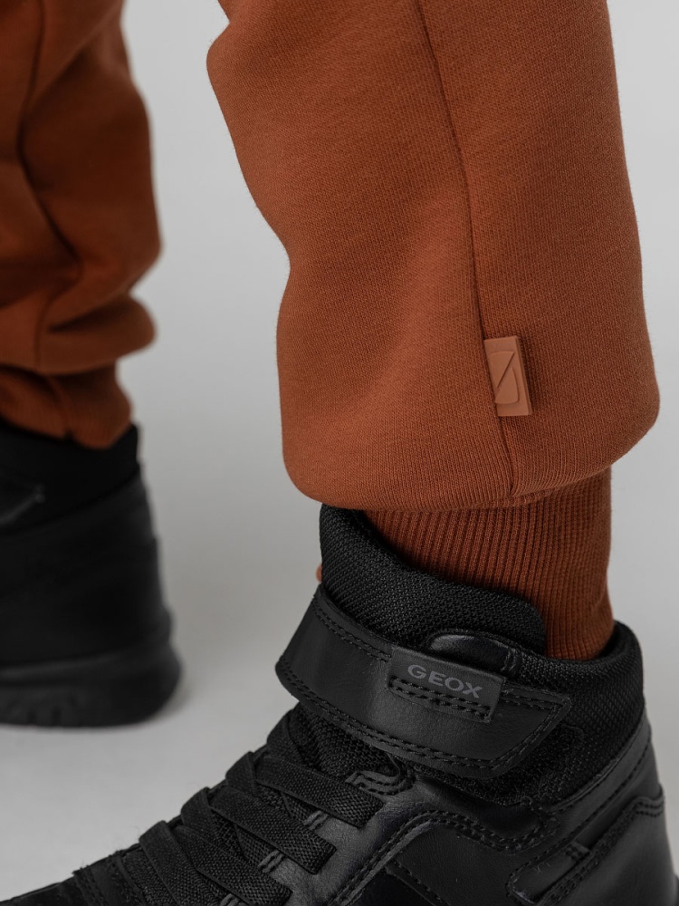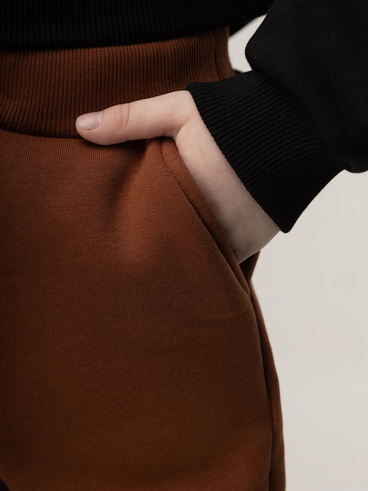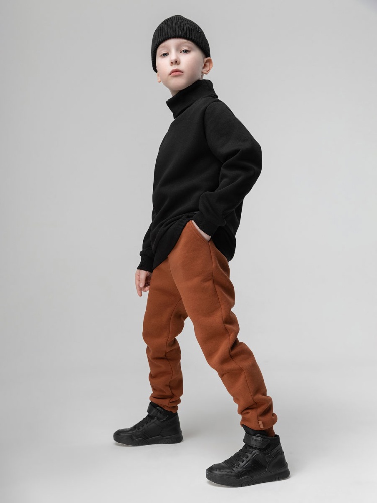 Материал футер трехнитка с начесом Состав 80% хлопок 20% полиэстер высота упаковки, мм 2 Брюки- джоггеры детские. Детали: полуприлегающий покрой, пояс - эластичная резинка, низ изделия- манжеты, карманы с отрезным бочком. Состав: футер трехнитка с начесом 80% хлопок 20% полиэстер