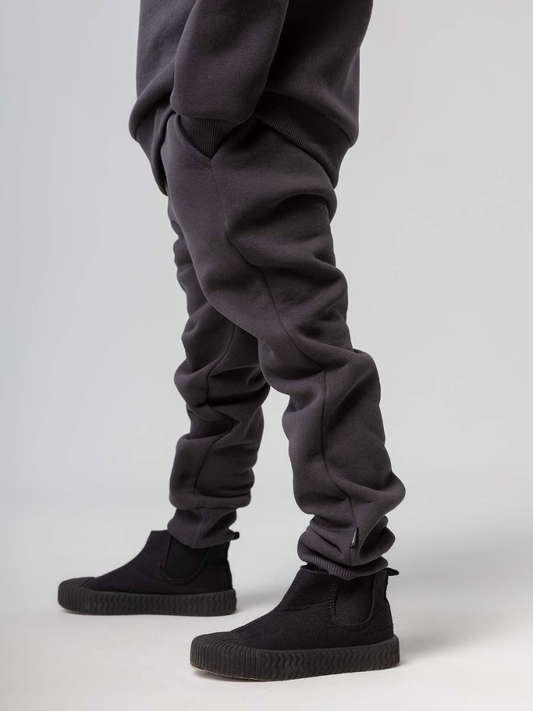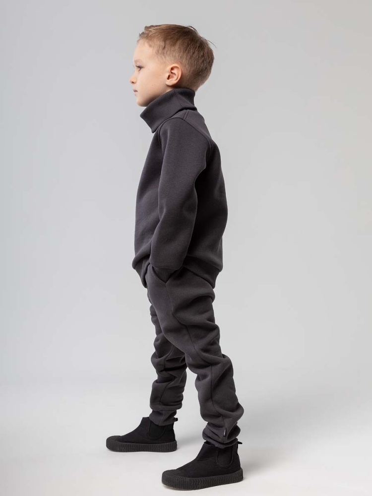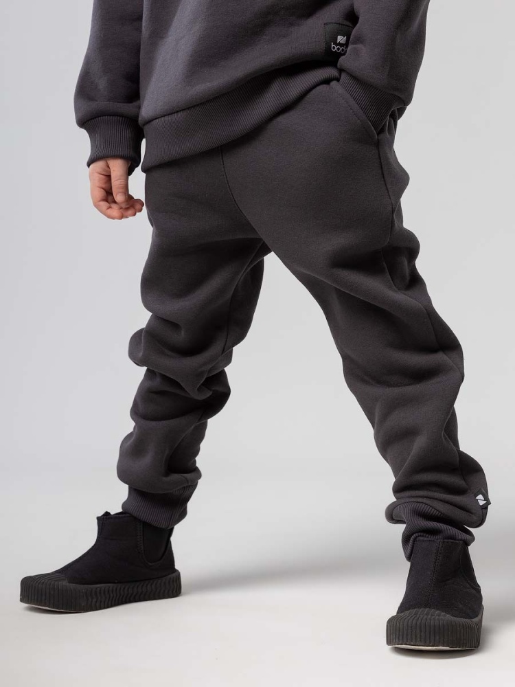 Материал футер трехнитка с начесом Состав 80% хлопок 20% полиэстер высота упаковки, мм 2 Брюки- джоггеры детские. Детали: полуприлегающий покрой, пояс - эластичная резинка, низ изделия- манжеты, карманы с отрезным бочком. Состав: футер трехнитка с начесом 80% хлопок 20% полиэстер
