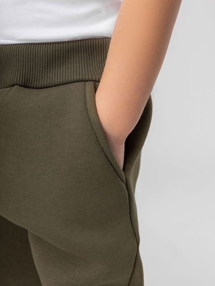 Материал футер трехнитка с начесом Состав 80% хлопок 20% полиэстер высота упаковки, мм 2 Брюки- джоггеры детские. Детали: полуприлегающий покрой, пояс - эластичная резинка, низ изделия- манжеты, карманы с отрезным бочком. Состав: футер трехнитка с начесом 80% хлопок 20% полиэстер