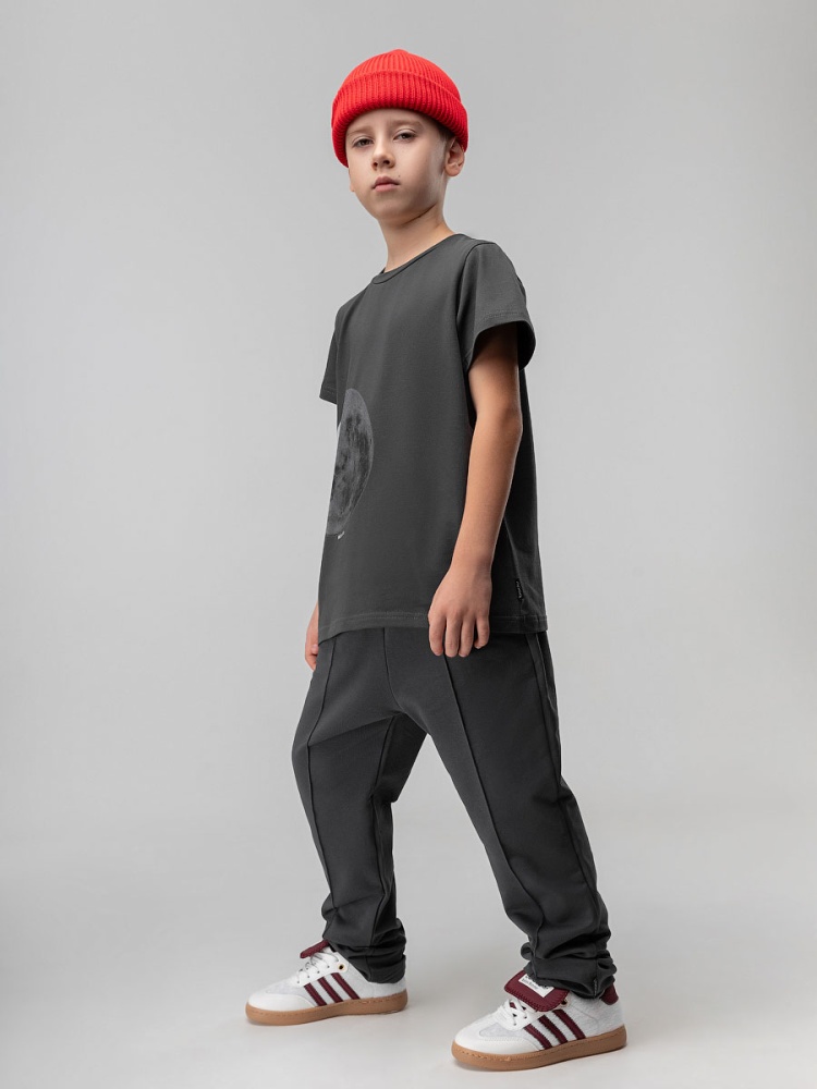 Материал футер двухнитка Состав 92% хлопок 8% лайкра Брюки для детей дошкольного возраста. Брюки прямые свободные с внутренней резинкой в поясе, по бокам карманы с отрезным бочком, отстроченные стрелки, низ брюк ровный. Состав: футер двухнитка 92% хлопок 8% лайкра